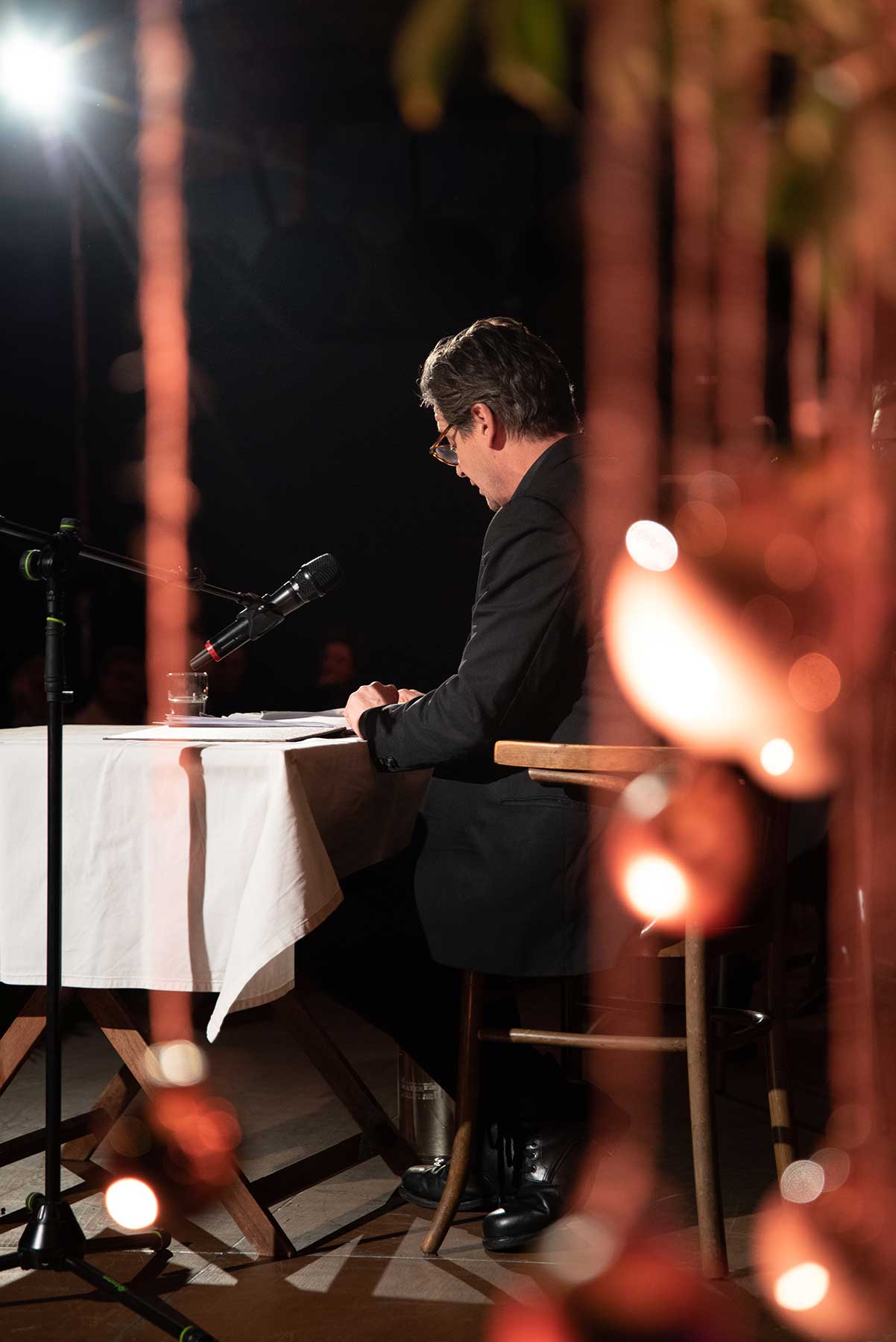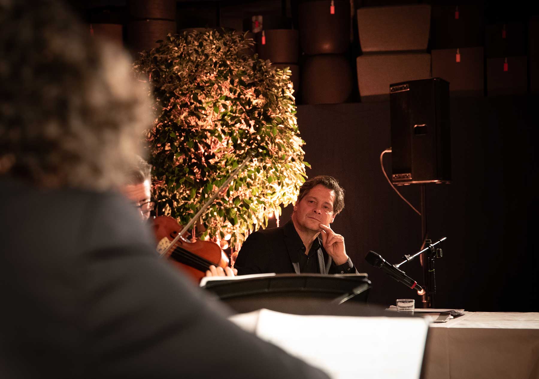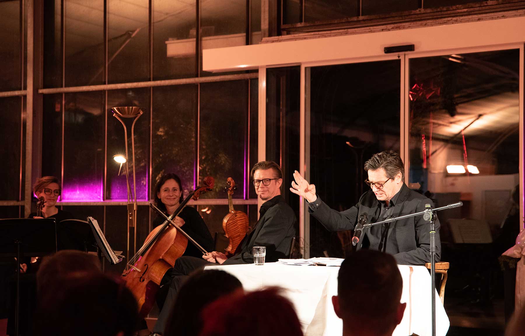 Das ausverkaufte Palmenhaus hat gern gelernt, was ein Krippenrinderstreik ist, welche Vanillekipferltypologien es gibt und was die beliebtesten Weihnachtskrisen sind. Wussten Sie also, dass Ihre sommerlichen Downs nur die Pause zwischen Vor-, Haupt- und Nachweihnachtsdepressionen sind? Oder haben Sie sich je Gedanken gemacht, wie sich Ihr Charity-Gedanke auf Ihre Leber auswirkt? Wenn Sie all das nicht wissen, haben Sie einen der wunderbarsten Vor-Weihnachtsabende in Aschbach versäumt. Sie haben versäumt wie charmant und gekonnt einer der bekanntesten Schauspieler der deutsch-österreichischen Bühne auf Zwischenrufe reagiert. Und sind außerdem um wunderbar mitreißende Versionen von Weihnachts-Klassikern in kreativer Streichquartett-Manier umgefallen.