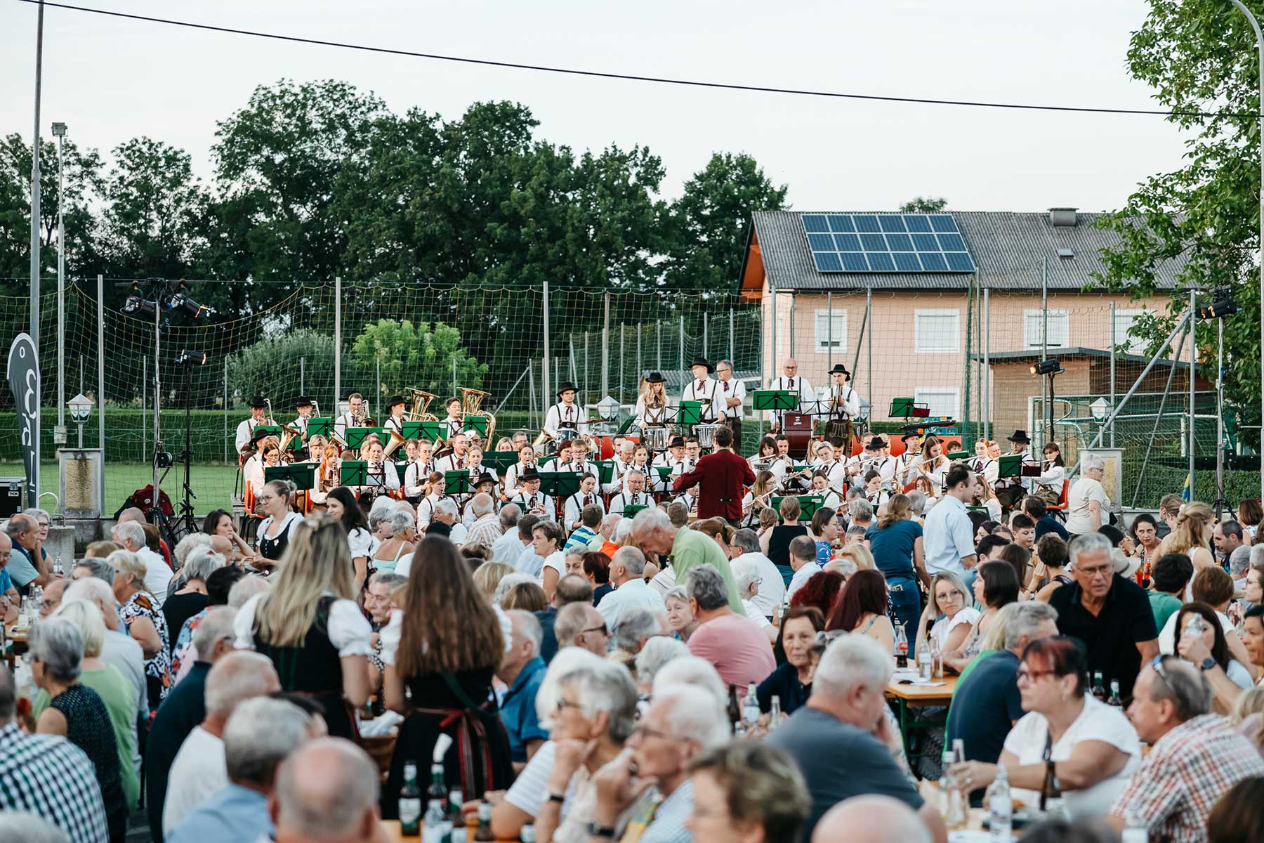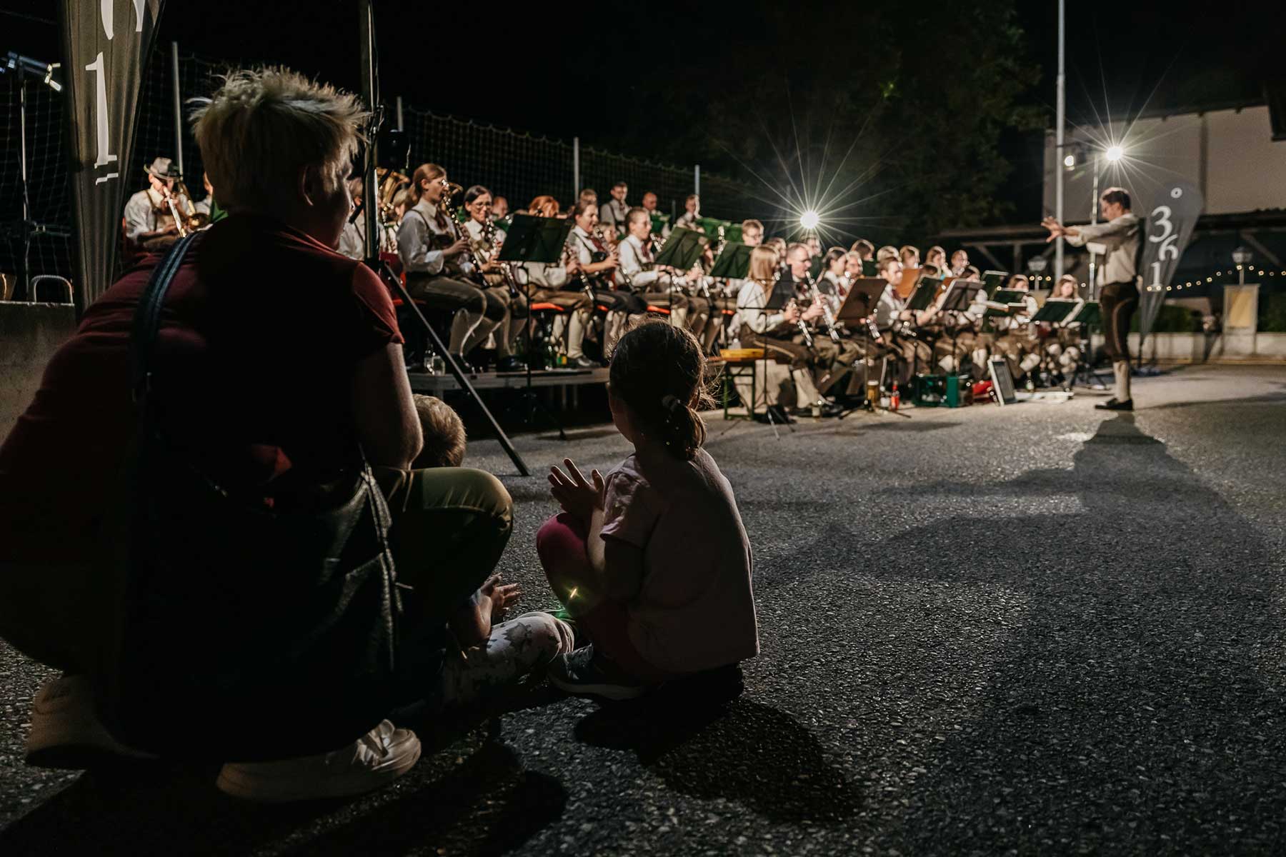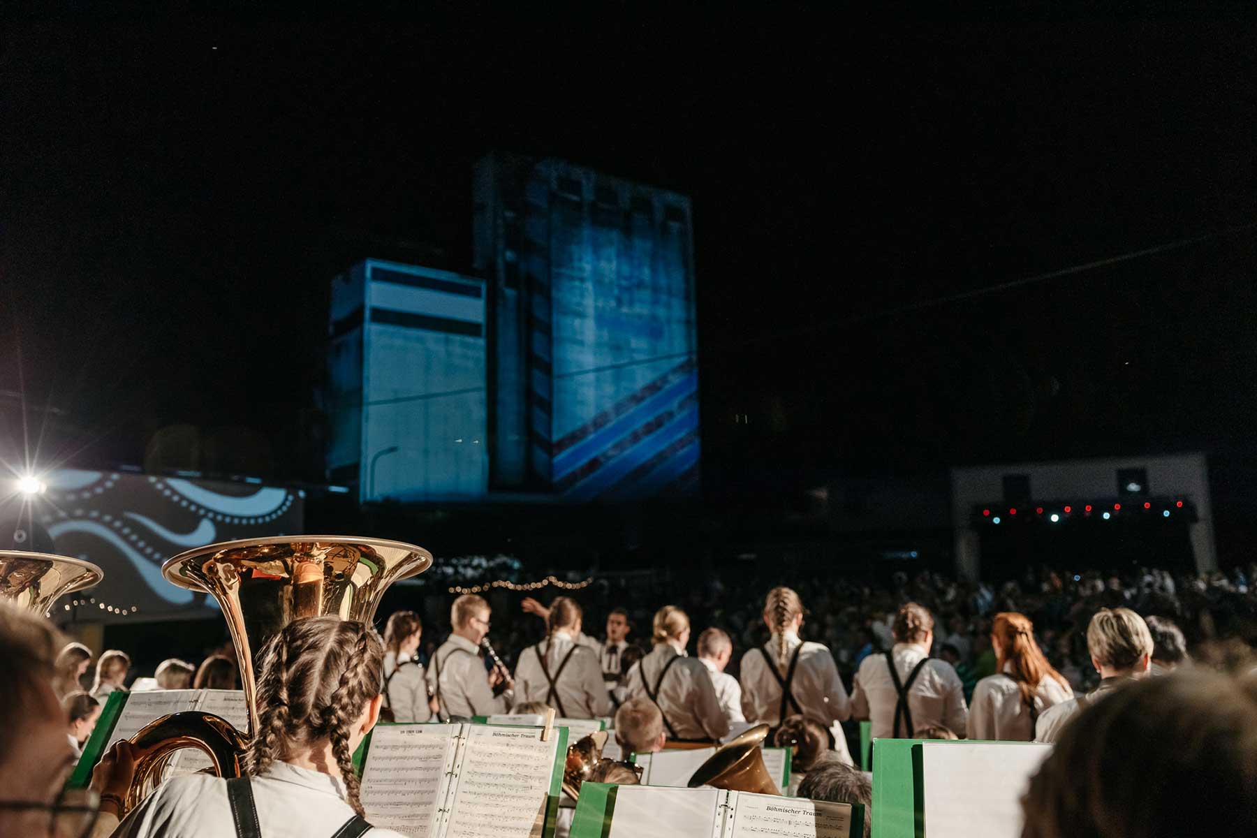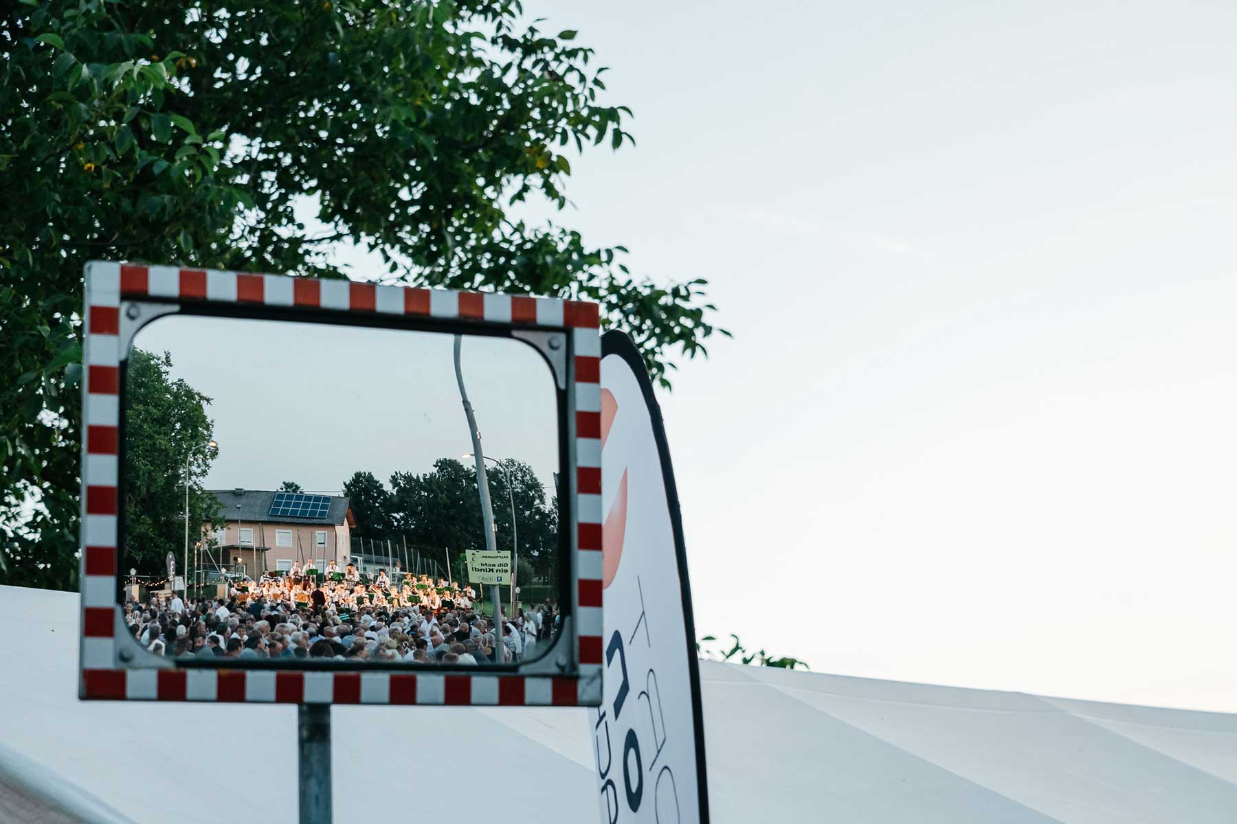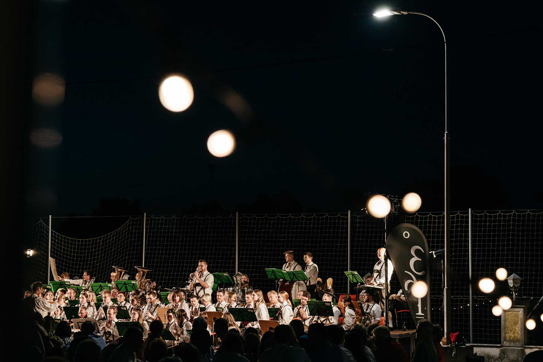 Großes Highlight an dem Abend außerdem: der Auftritt der Musikkapelle Aschbach mit der Uraufführung des „Ludwig“. Ein Kompositionsauftrag von 361°, ein Werk von Matthias Haslinger und Manfred Hirtenlehner. Ein Marsch als Geschenk von 361° an die Bewohner*innen Aschbachs – übergeben von uns stellvertretend an den Bürgermeister. Wir glauben, er war – wie über 1.000 (!) Besucher*innen an diesem Abend – ein bisschen gerührt. Beeindruckt. Inspiriert. Von dem Vibe, der dieses „Marktfest à la 361°“ umgab. Wir hatten es uns so gewünscht, genau so ging es in Erfüllung: es war ein besonderer Spirit in der Luft – generationenverbindend, in die Zukunft weisend, die Vergangenheit feiernd.