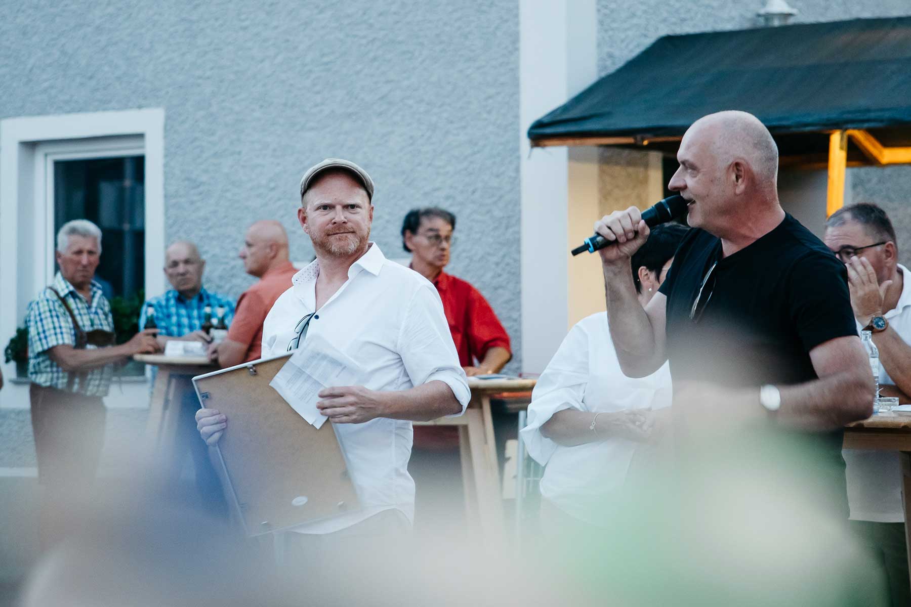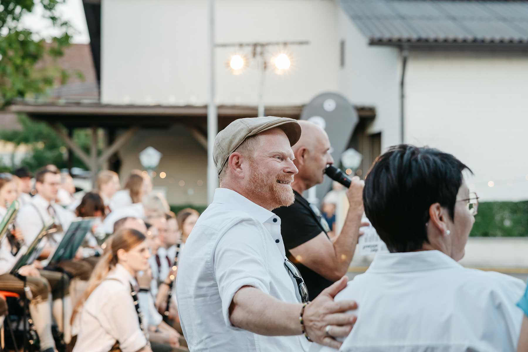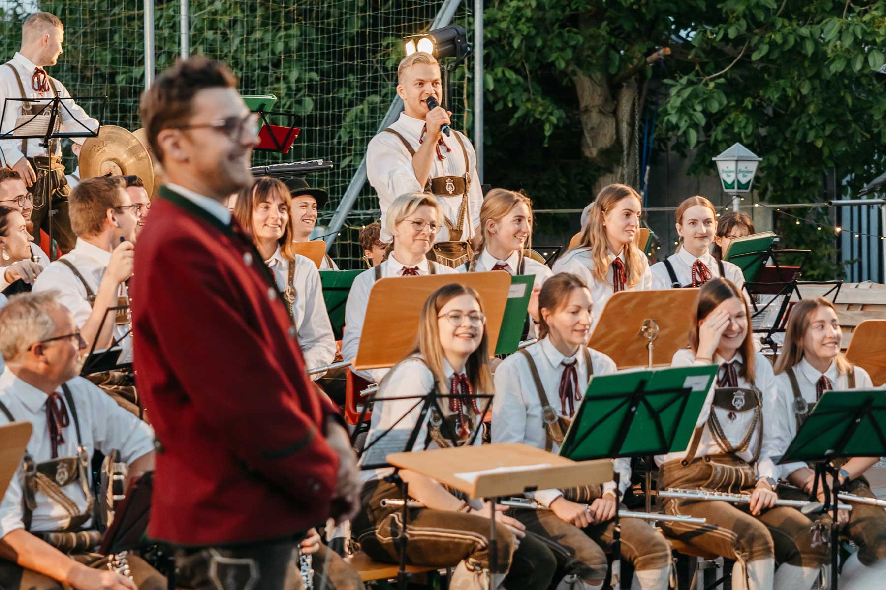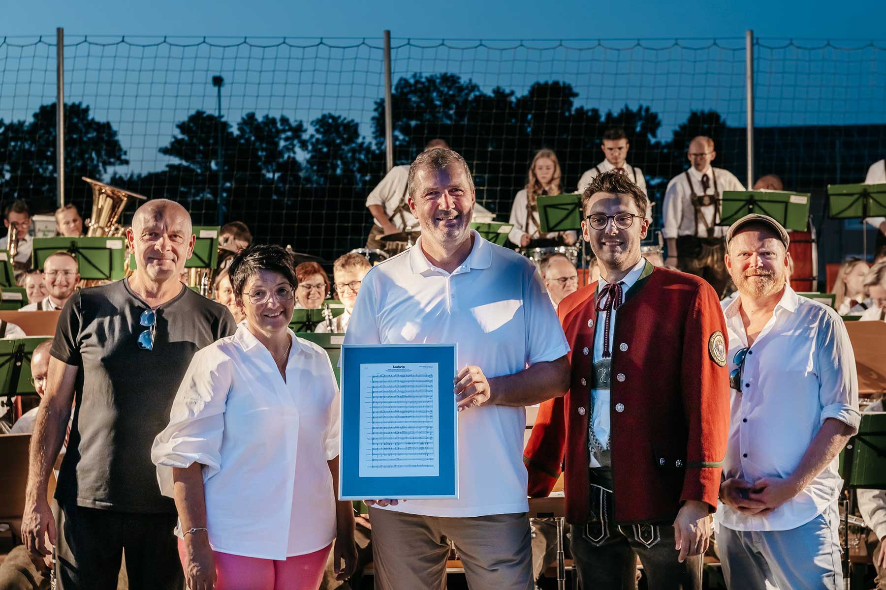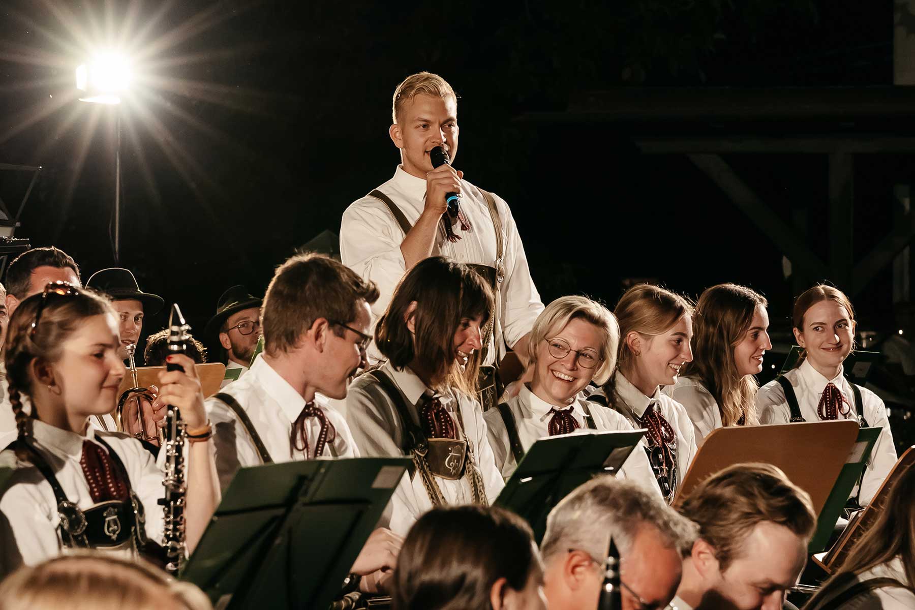 Großes Highlight an dem Abend außerdem: der Auftritt der Musikkapelle Aschbach mit der Uraufführung des „Ludwig“. Ein Kompositionsauftrag von 361°, ein Werk von Matthias Haslinger und Manfred Hirtenlehner. Ein Marsch als Geschenk von 361° an die Bewohner*innen Aschbachs – übergeben von uns stellvertretend an den Bürgermeister. Wir glauben, er war – wie über 1.000 (!) Besucher*innen an diesem Abend – ein bisschen gerührt. Beeindruckt. Inspiriert. Von dem Vibe, der dieses „Marktfest à la 361°“ umgab. Wir hatten es uns so gewünscht, genau so ging es in Erfüllung: es war ein besonderer Spirit in der Luft – generationenverbindend, in die Zukunft weisend, die Vergangenheit feiernd.