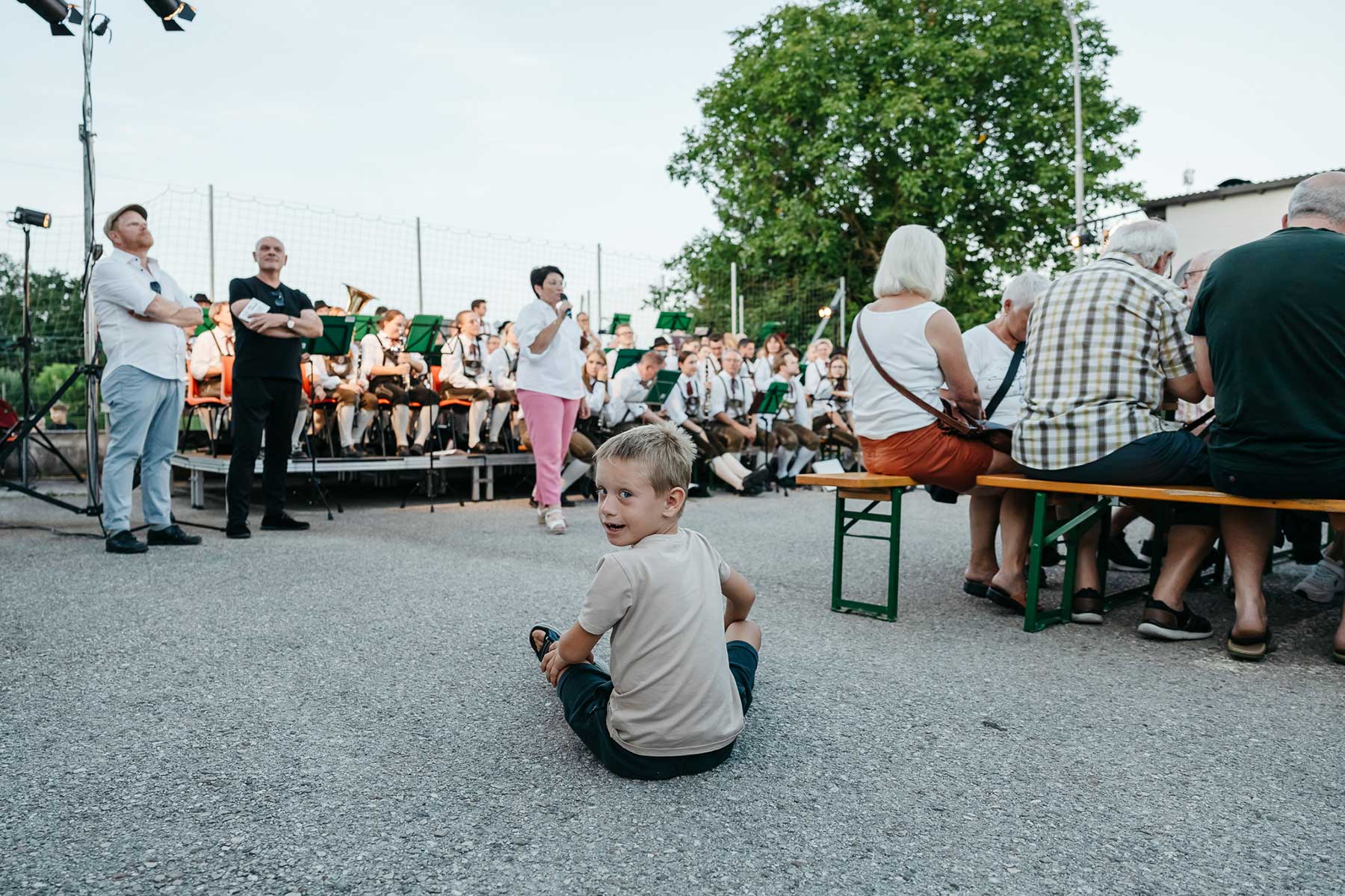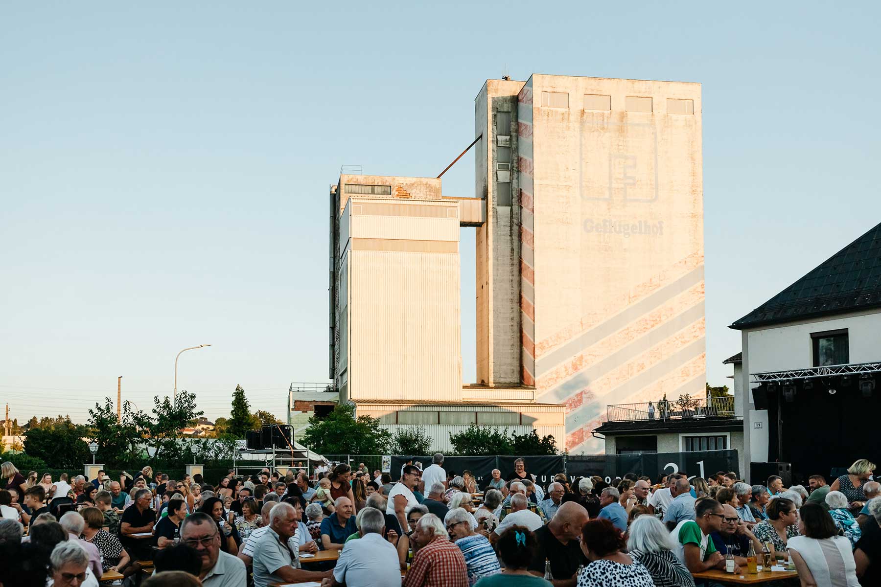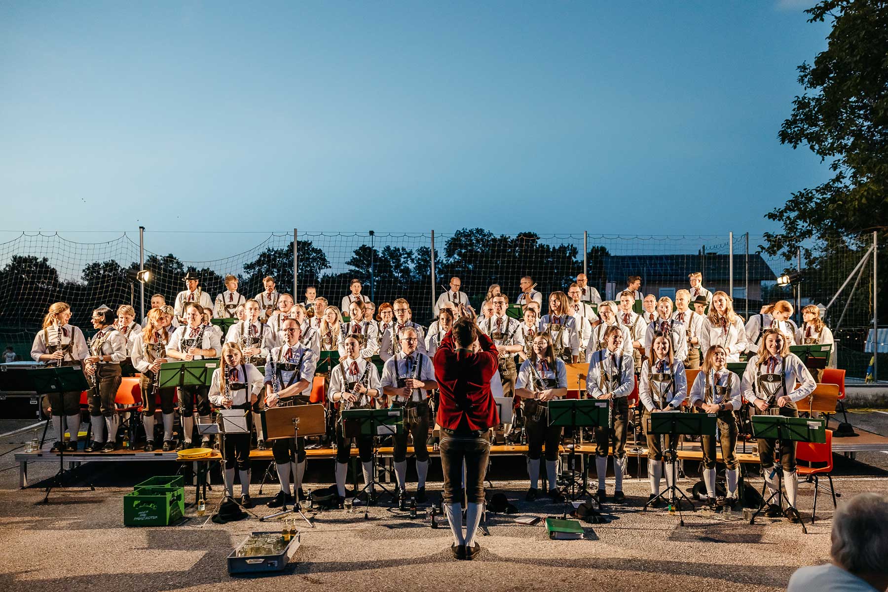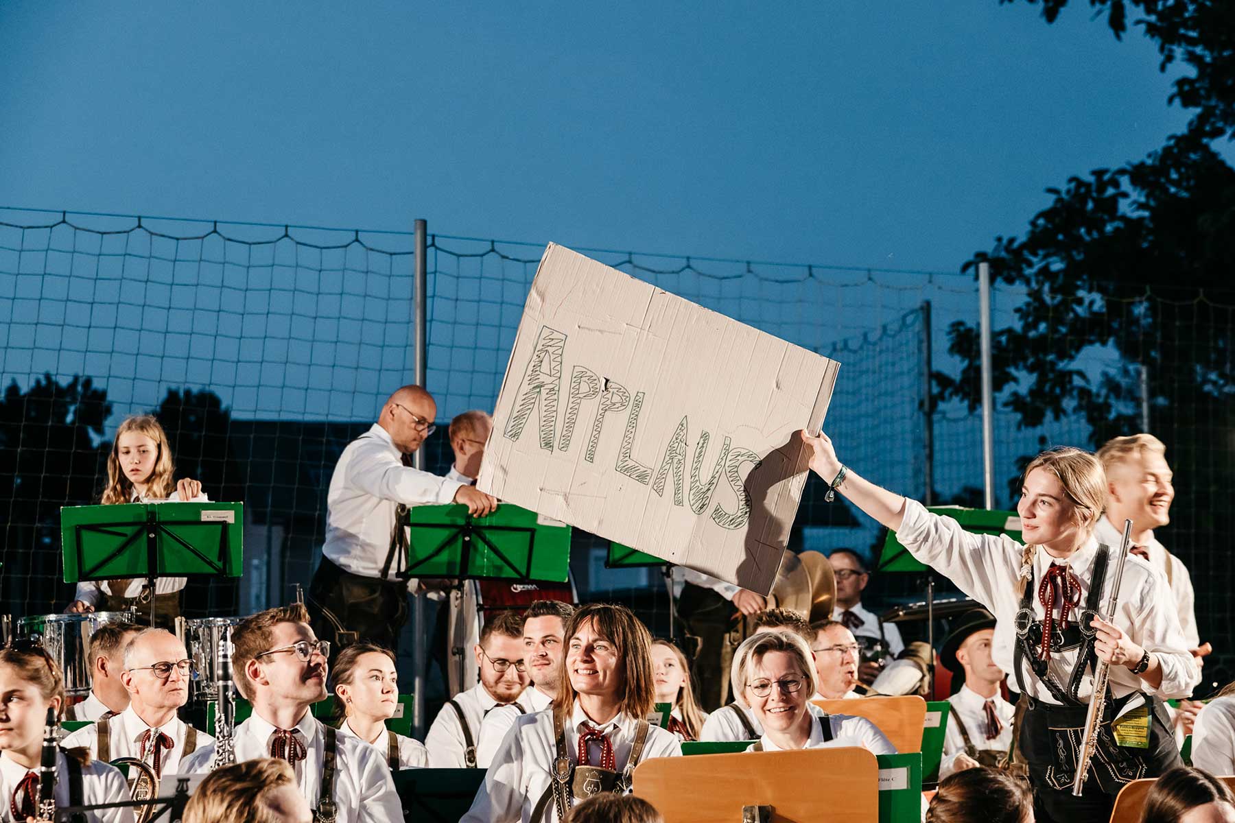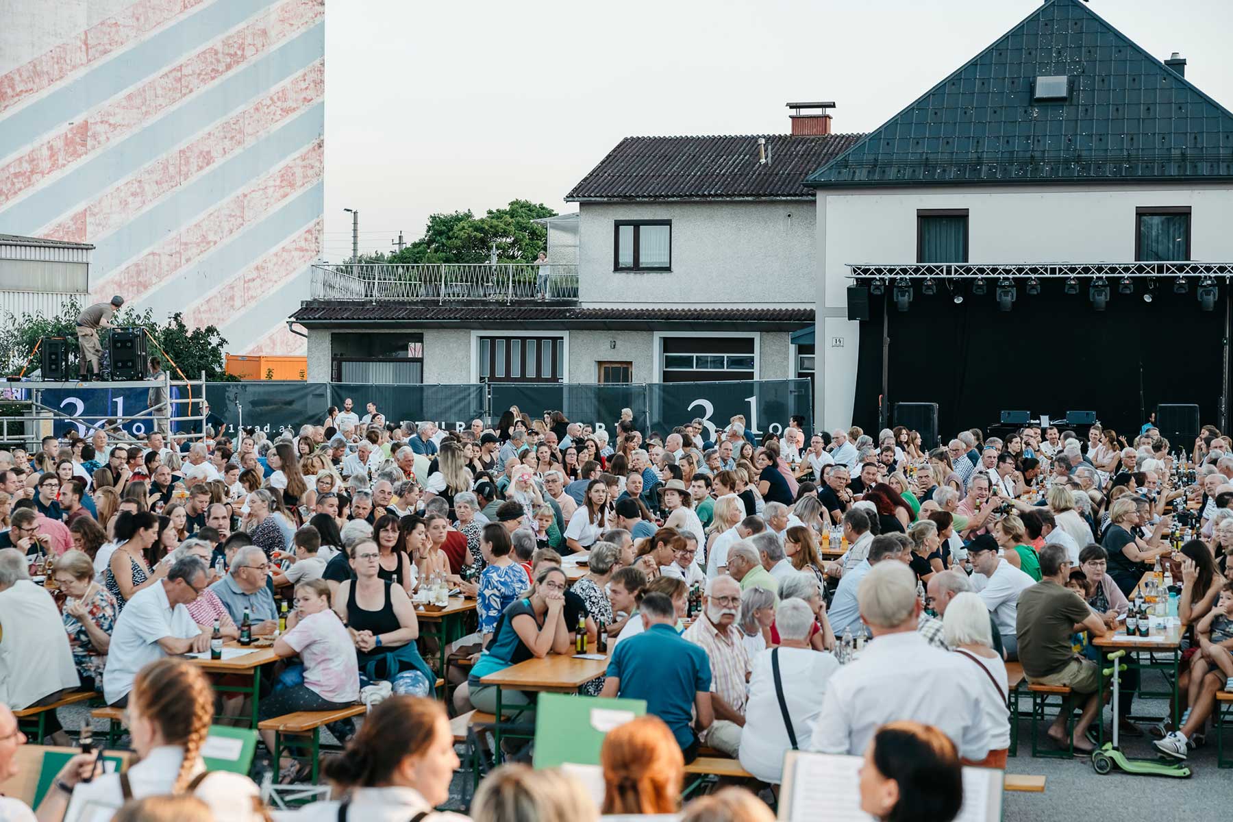 Großes Highlight an dem Abend außerdem: der Auftritt der Musikkapelle Aschbach mit der Uraufführung des „Ludwig“. Ein Kompositionsauftrag von 361°, ein Werk von Matthias Haslinger und Manfred Hirtenlehner. Ein Marsch als Geschenk von 361° an die Bewohner*innen Aschbachs – übergeben von uns stellvertretend an den Bürgermeister. Wir glauben, er war – wie über 1.000 (!) Besucher*innen an diesem Abend – ein bisschen gerührt. Beeindruckt. Inspiriert. Von dem Vibe, der dieses „Marktfest à la 361°“ umgab. Wir hatten es uns so gewünscht, genau so ging es in Erfüllung: es war ein besonderer Spirit in der Luft – generationenverbindend, in die Zukunft weisend, die Vergangenheit feiernd.