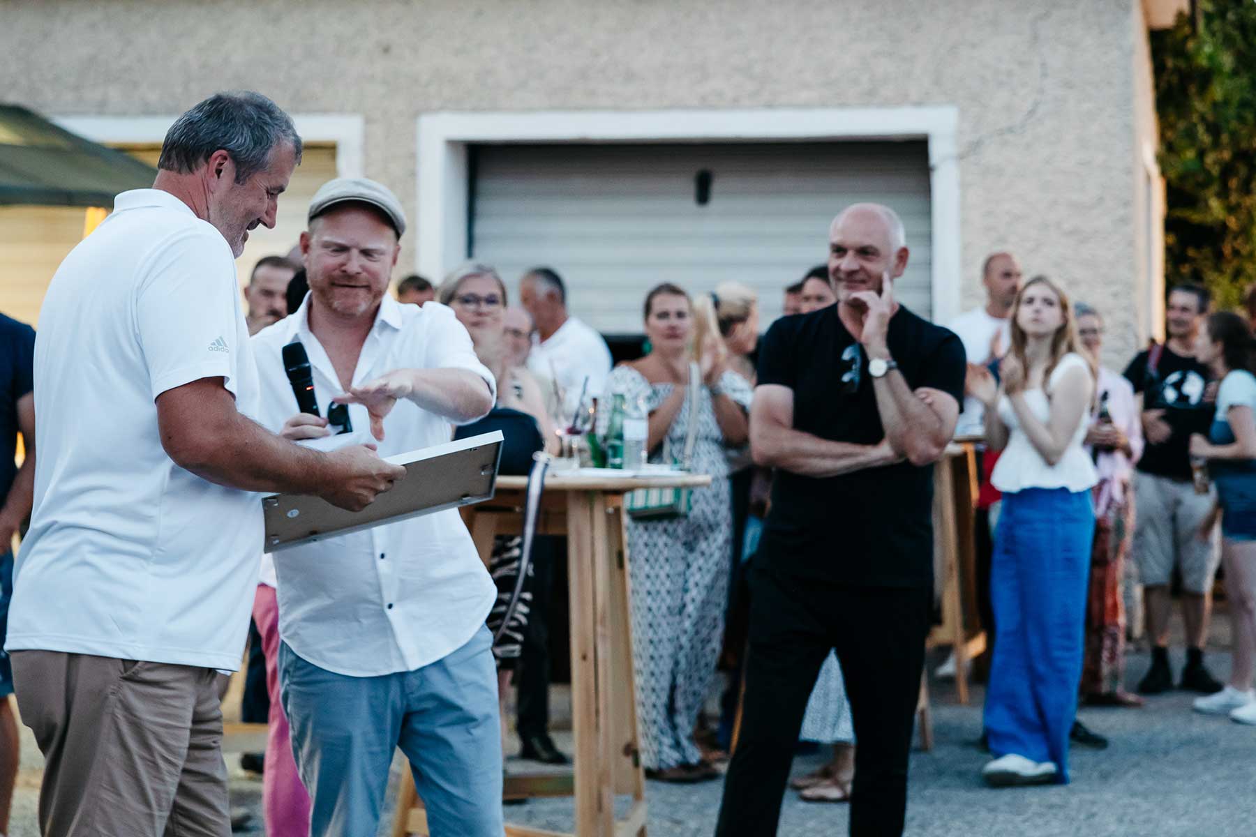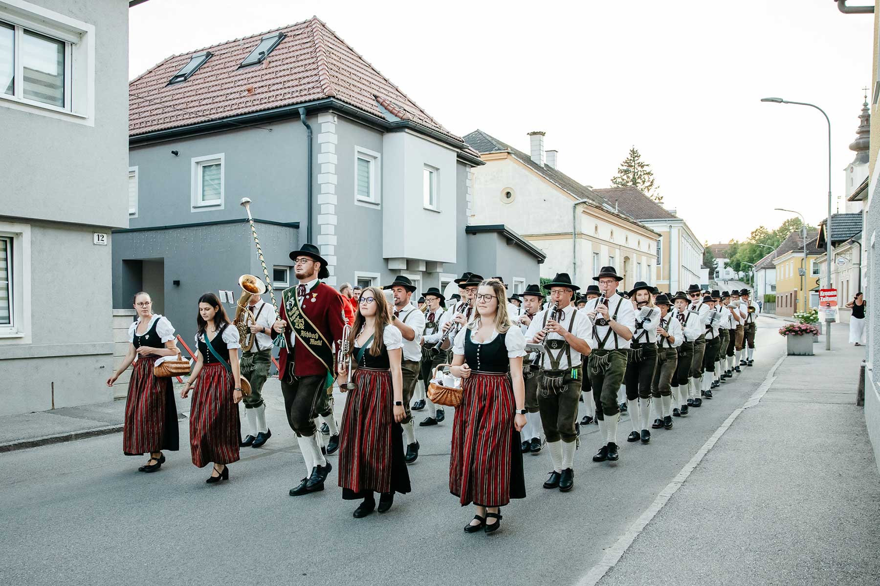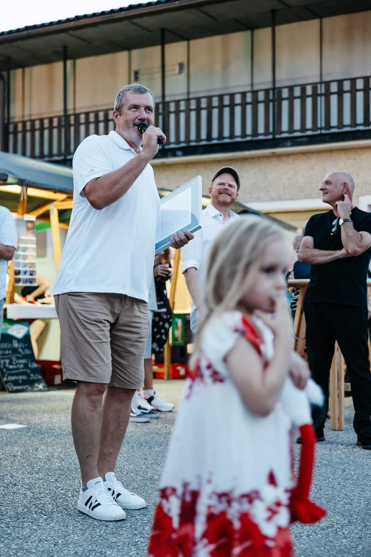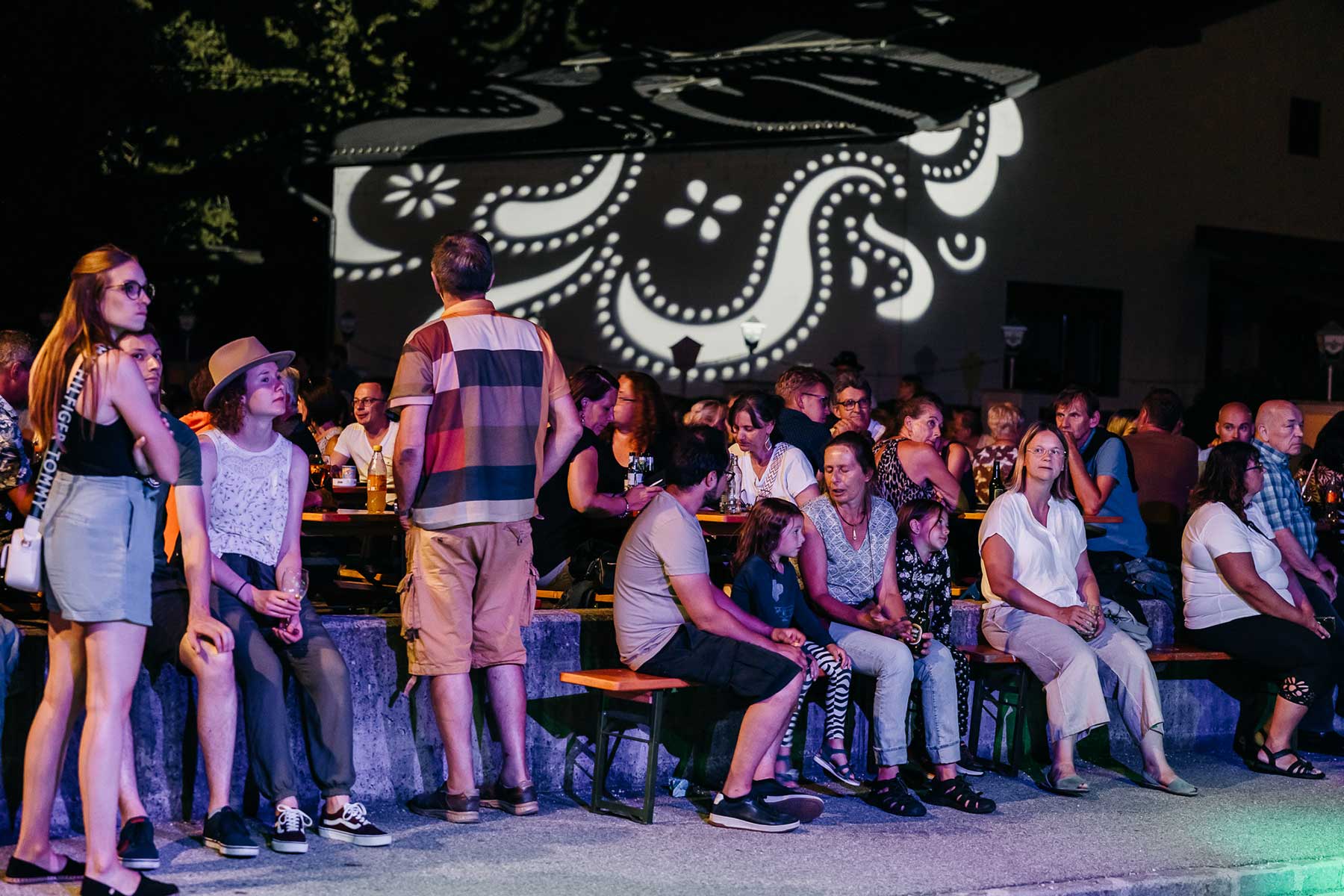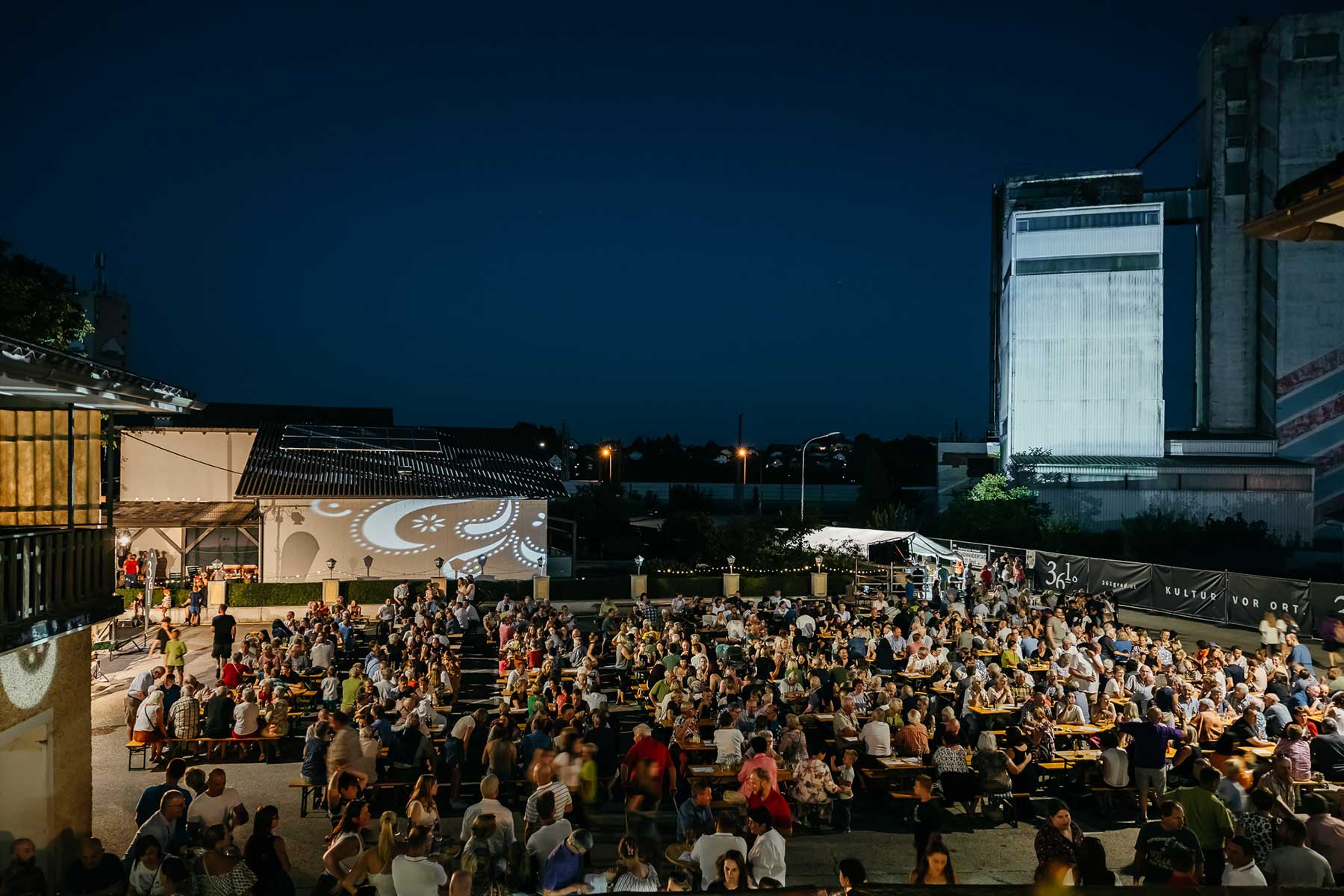 Großes Highlight an dem Abend außerdem: der Auftritt der Musikkapelle Aschbach mit der Uraufführung des „Ludwig“. Ein Kompositionsauftrag von 361°, ein Werk von Matthias Haslinger und Manfred Hirtenlehner. Ein Marsch als Geschenk von 361° an die Bewohner*innen Aschbachs – übergeben von uns stellvertretend an den Bürgermeister. Wir glauben, er war – wie über 1.000 (!) Besucher*innen an diesem Abend – ein bisschen gerührt. Beeindruckt. Inspiriert. Von dem Vibe, der dieses „Marktfest à la 361°“ umgab. Wir hatten es uns so gewünscht, genau so ging es in Erfüllung: es war ein besonderer Spirit in der Luft – generationenverbindend, in die Zukunft weisend, die Vergangenheit feiernd.