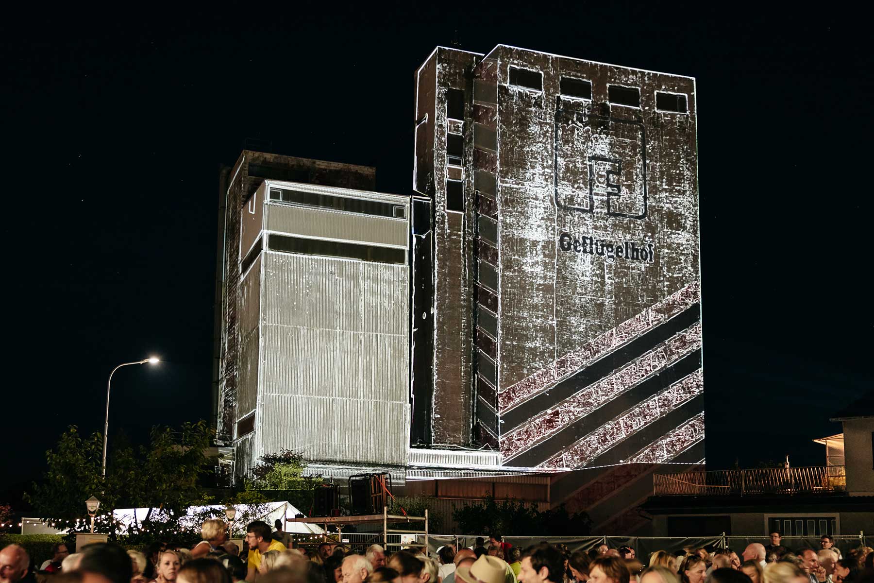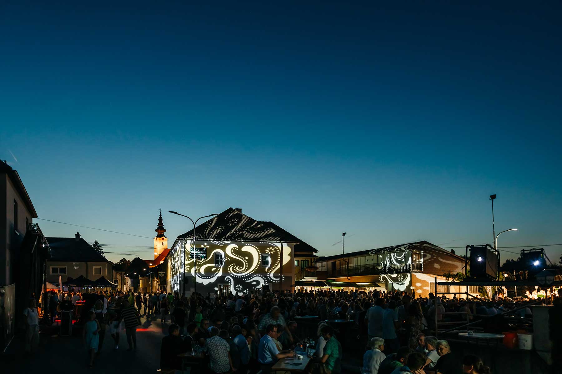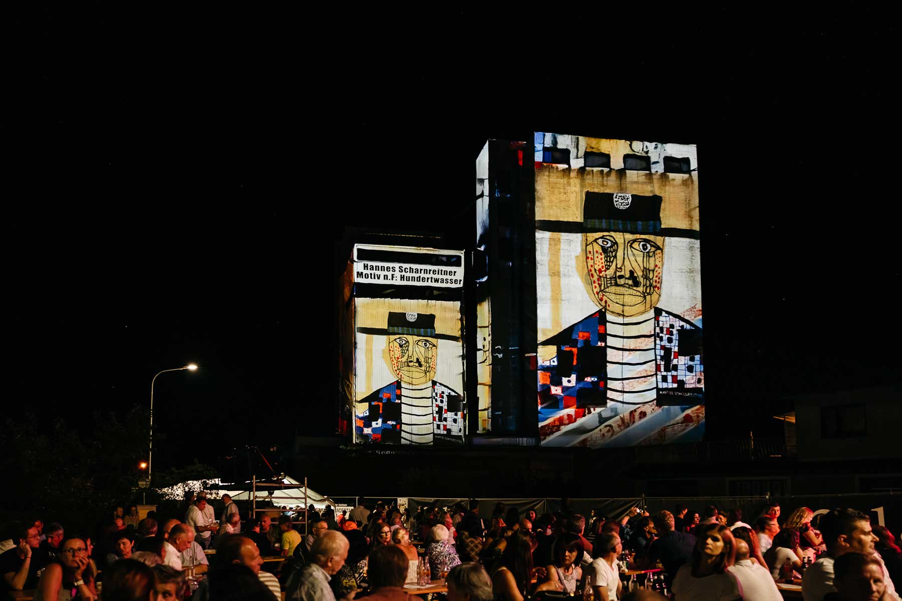 Ein Marktfest, aber doch keines, wie man es kennt. Im Mittelpunkt die Aschbacher*innen, aber auch der Fehringer Turm. Das hassgeliebte, heimliche Wahrzeichen der Gemeinde wurde am 14. August unter dem Titel „Henriette flieg!“ einen Abend lang kongenial verzaubert und der Ort gleich mit. Der Projektionskünstler Markus Kautz alias Spirit Society erschuf mit seinen unfassbar beeindruckenden Projektionen auf diesen Turm eine utopisch schöne Welt, eine surreale Zukunftsvision, eine wahnsinnige Show. Huhn Henriette erstand wieder auf und lieferte ab – nämlich eine visuelle Explosion (im wahrsten Sinne).