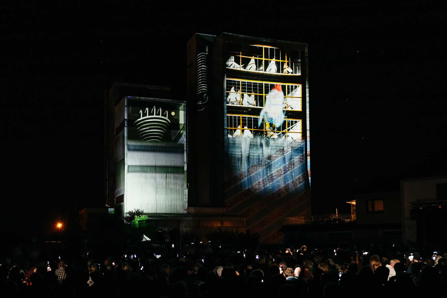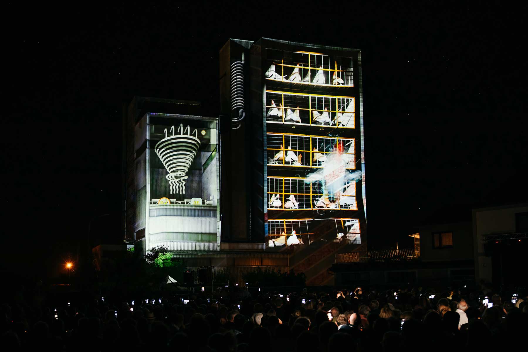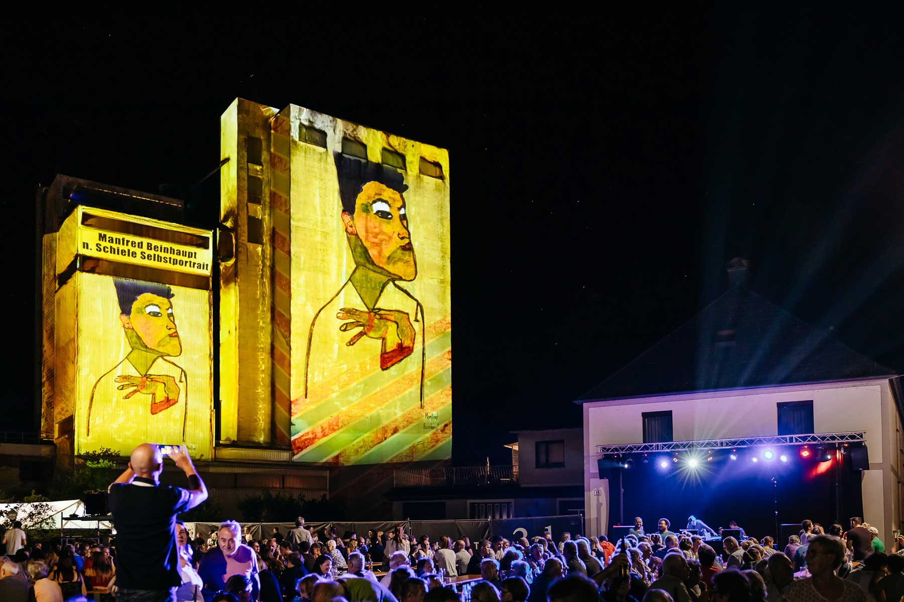 Ein Marktfest, aber doch keines, wie man es kennt. Im Mittelpunkt die Aschbacher*innen, aber auch der Fehringer Turm. Das hassgeliebte, heimliche Wahrzeichen der Gemeinde wurde am 14. August unter dem Titel „Henriette flieg!“ einen Abend lang kongenial verzaubert und der Ort gleich mit. Der Projektionskünstler Markus Kautz alias Spirit Society erschuf mit seinen unfassbar beeindruckenden Projektionen auf diesen Turm eine utopisch schöne Welt, eine surreale Zukunftsvision, eine wahnsinnige Show. Huhn Henriette erstand wieder auf und lieferte ab – nämlich eine visuelle Explosion (im wahrsten Sinne).
