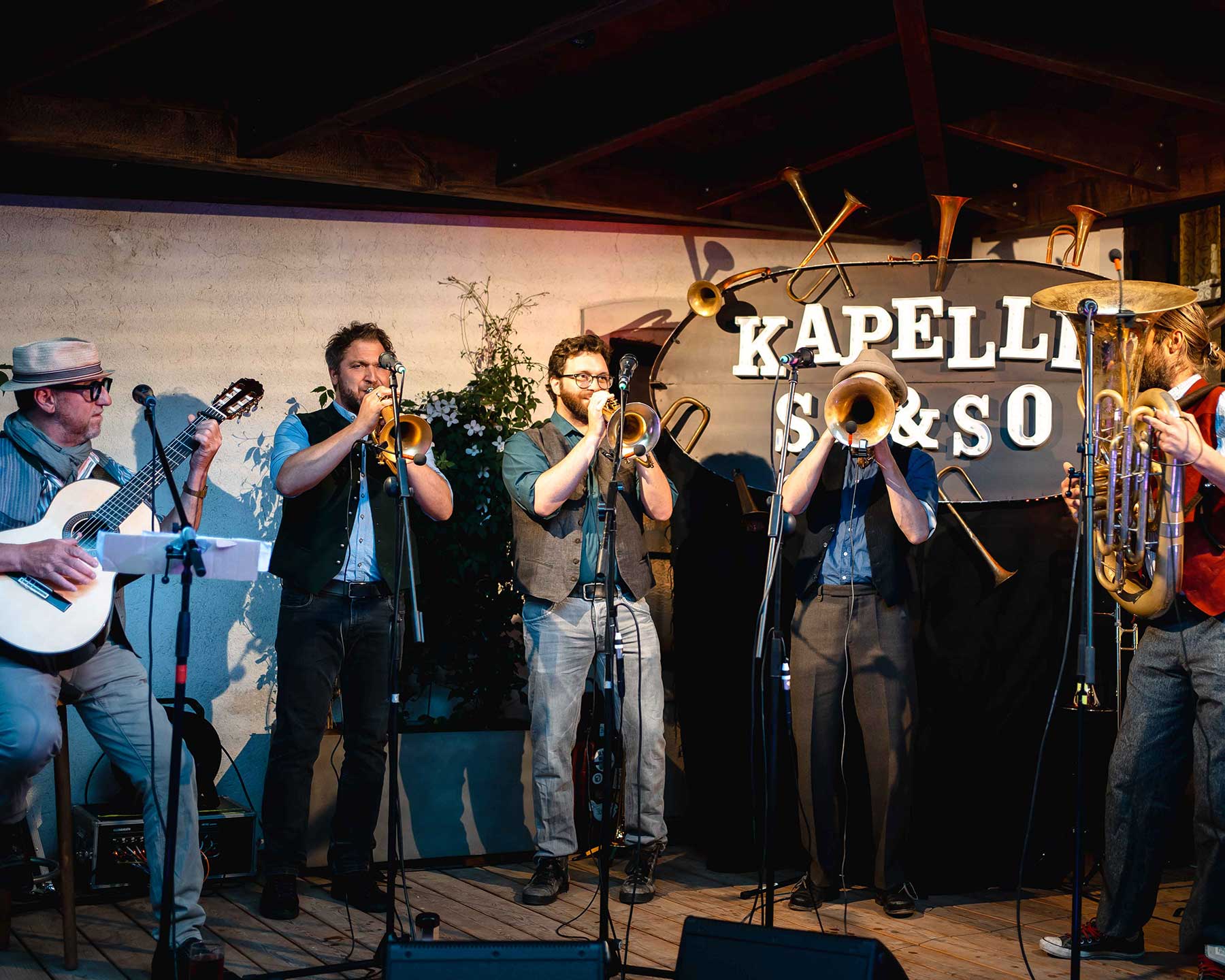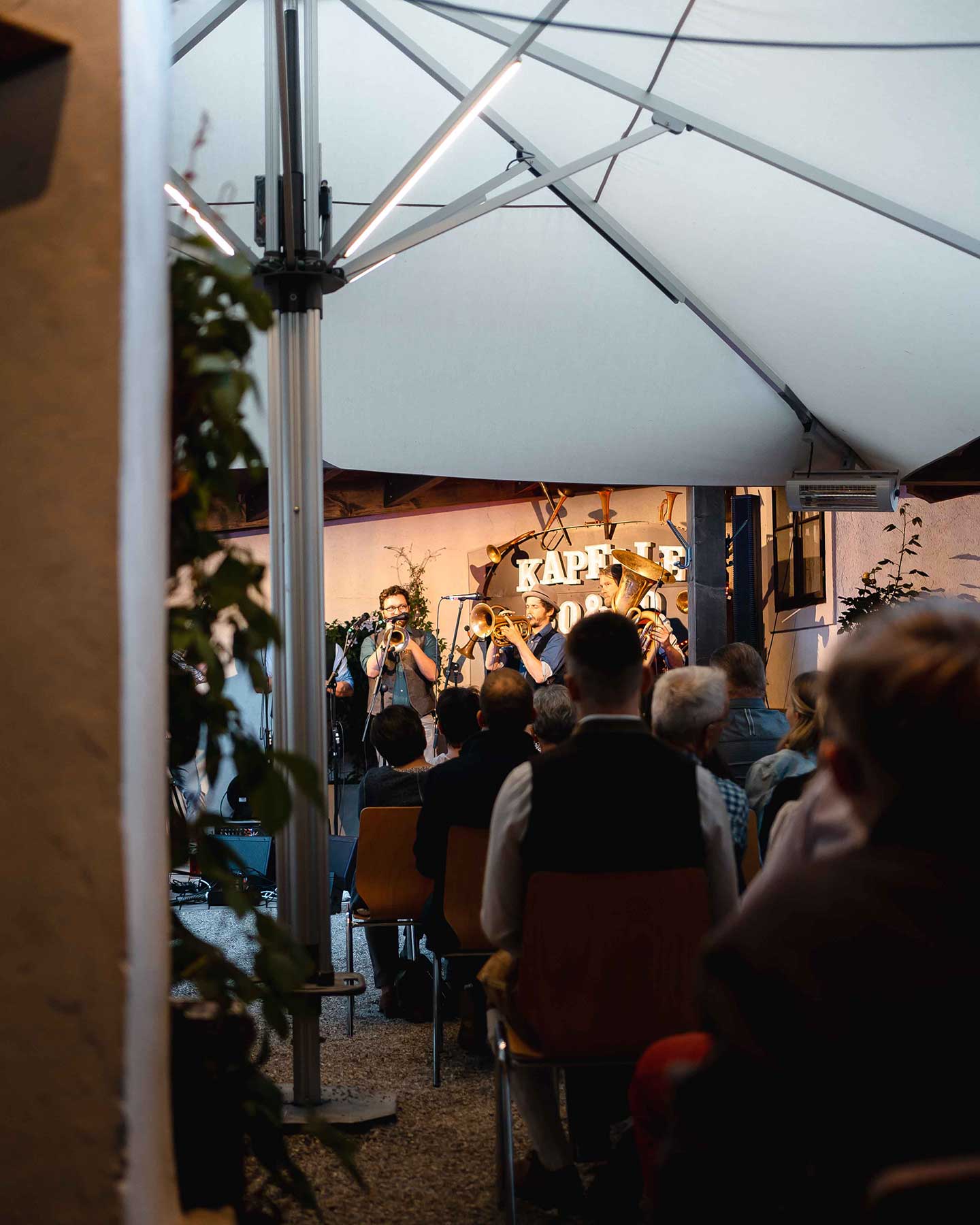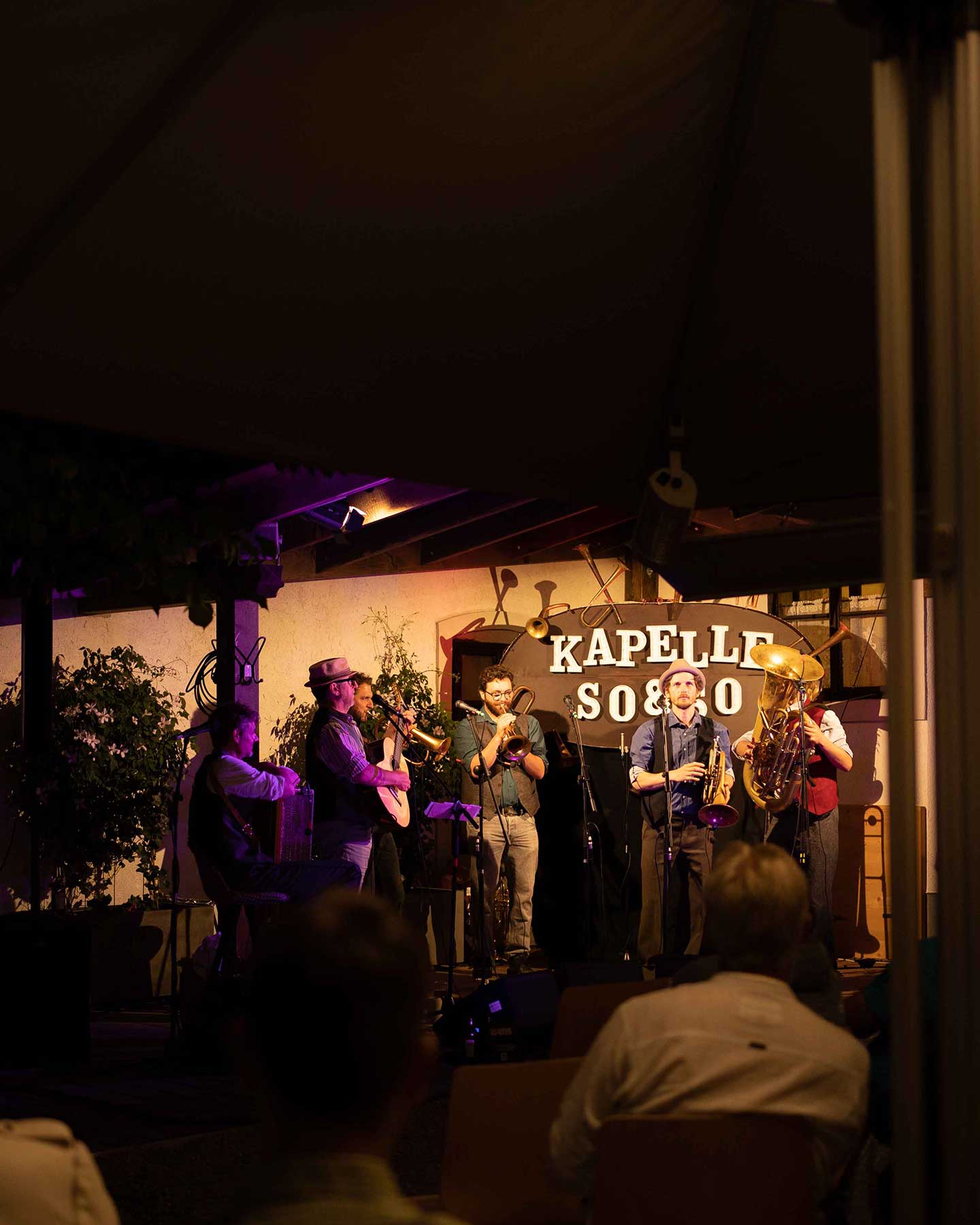 Ein lauer Frühsommerabend, erfrischende Getränke, ein wunderschönes Ambiente und eine Kapelle, nein DIE Kapelle So & So – was für ein beglückender Abend!