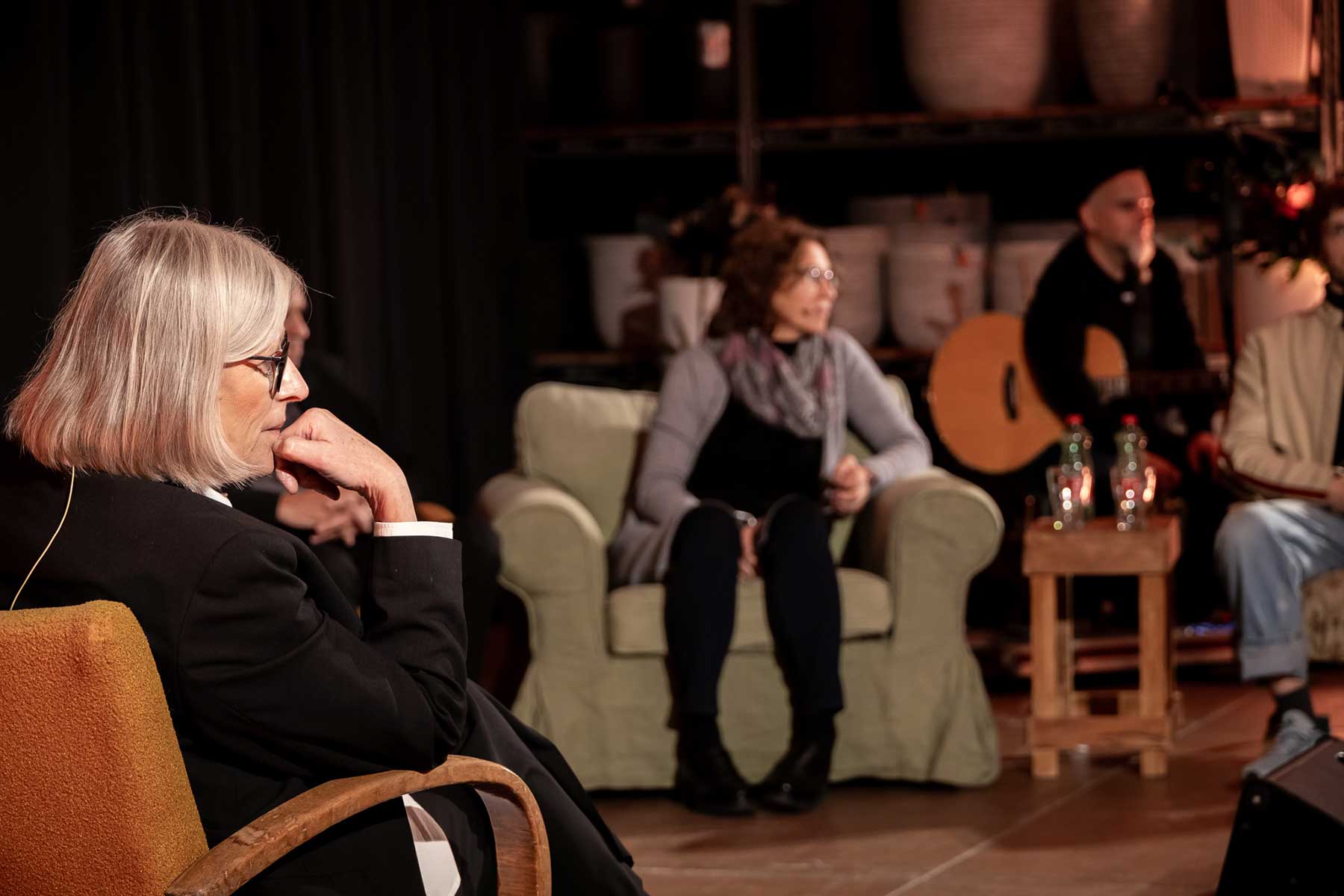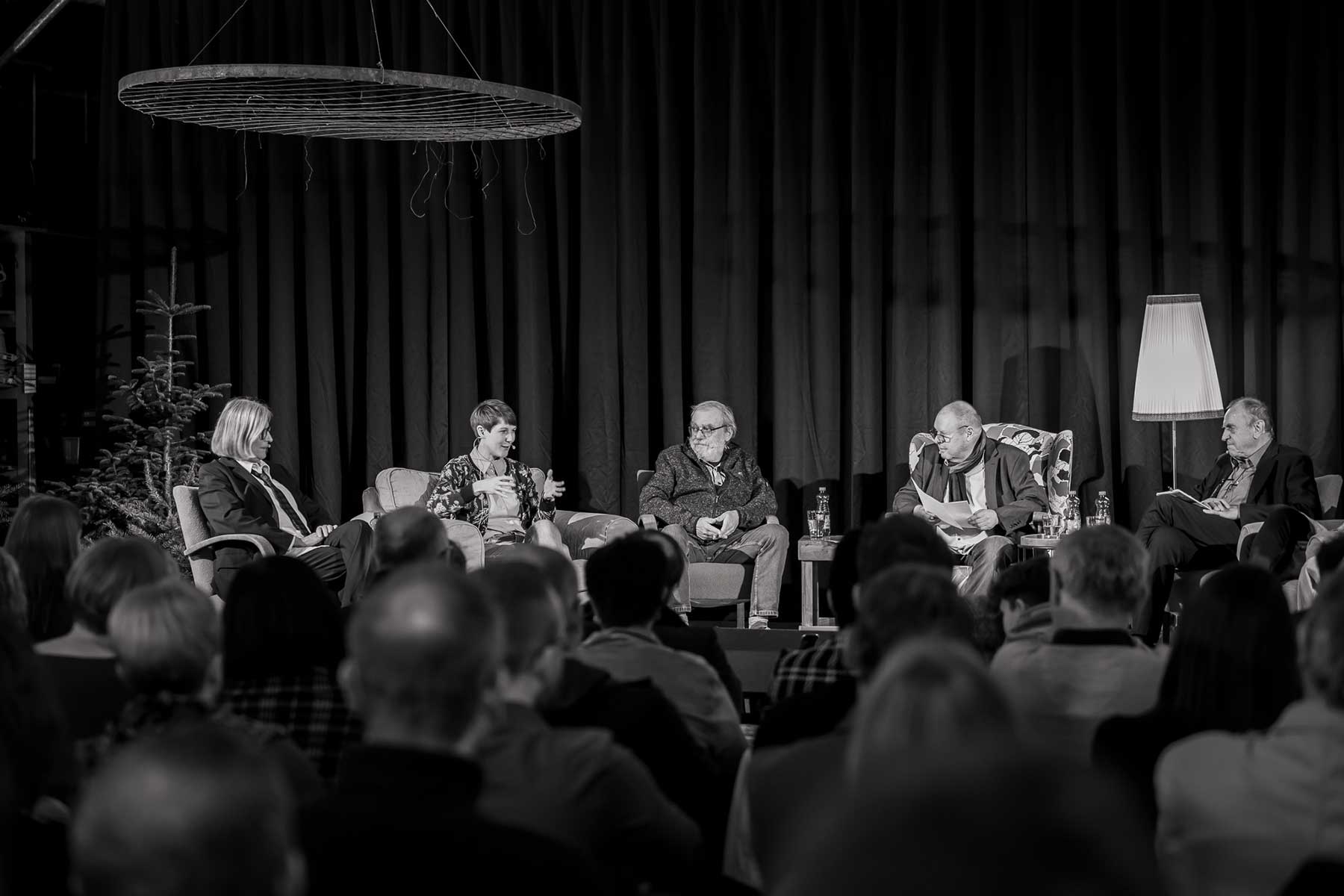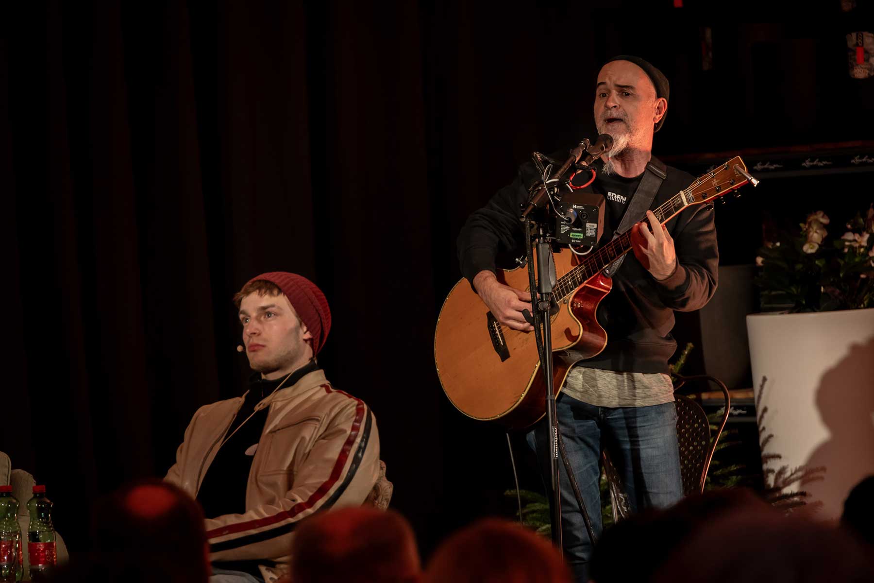 Zum Schmunzeln oder auch selbst Nachspüren luden die Erzählungen prägender Kindheits- und Jugenderinnerungen ein. Auch verlorene Sehnsuchtsplätze wurden aufgezeigt und der Umgang mit geschichtlichen Orten und architektonischen Besonderheiten wurde kritisch beleuchtet. Durch Wortspenden aus dem Publikum, aber auch angeregte Debatten im Anschluss an die Podiumsdiskussion, konnte man rasch merken, wie tiefgreifend all diese Themen im Leben der ansässigen oder auch nicht (mehr) ansässigen Personen verankert sind. Und wie schwierig es dennoch ist, öffentlich darüber zu reden. Gut 100 Gäste nahmen sich Zeit, um den eigenen Wurzeln, der eigenen Heimat und dem Landleben Raum zu geben und sich auf den eigenen und fremden Heimatbegriff einzulassen. Der Gitarrist Mario Malidus untermalte die Reflexionsmomente während der kurzen Pausen zwischen den Themenblöcken passend liebevoll.