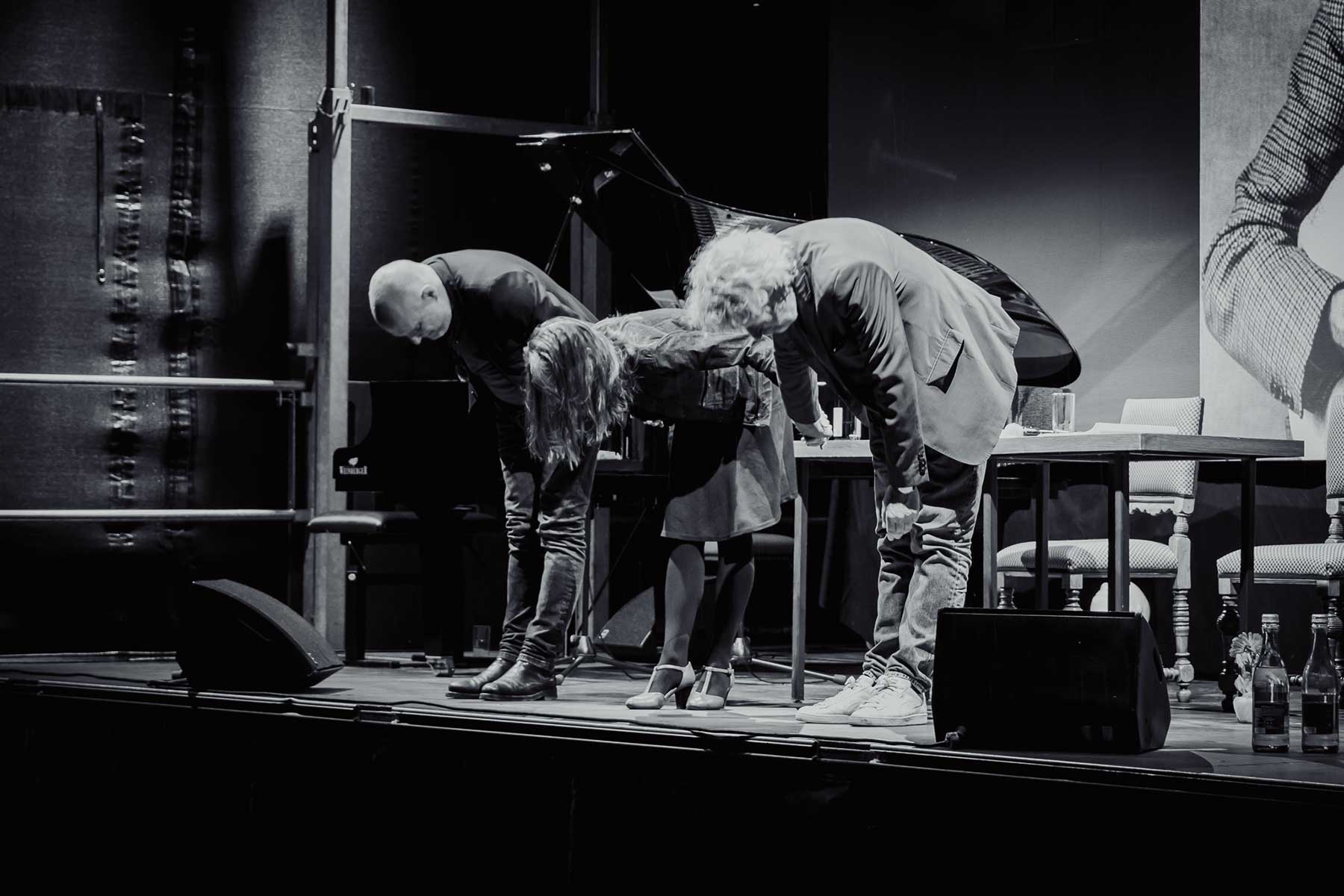 Stermann & Grissemann, die einzigen in Österreich, die Loriot aufführen dürfen, präsentierten dessen Werke unter dem Titel “Das Ei ist hart” auf köstlichste Art und Weise. Der Humor dieser teilweise über 50 Jahre alten Texte hat offenbar bis heute nichts von seiner Genialität eingebüßt – des Pfarrers Garten war mit Lachen erfüllt. Das Duo tat natürlich sein Übriges dazu, indem die Originaltexte da oder dort durch ihre einzigartigen Improvisationen unterbrochen wurden. Die Pianistin Philippine Duchâteau, Lehrerin an der Musikschule Mostviertel, setzte dem Ganzen mit ihrem Charme und ihrer virtuosen Begleitung am Klavier noch das Sahnehäubchen auf.