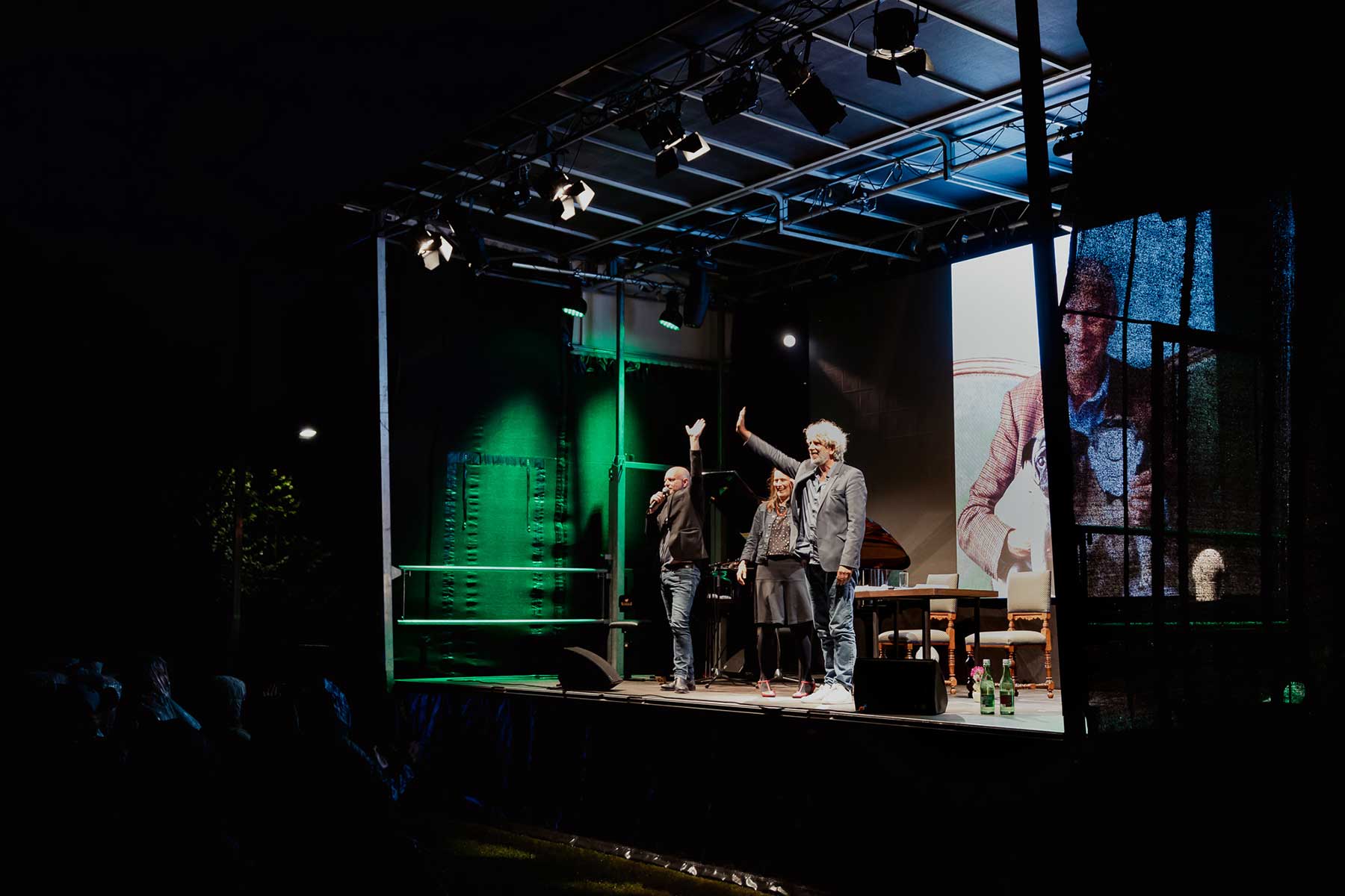 Danke für dieses einzigartige Open-Air-Wochenende, das besser nicht hätte sein können! Danke euch fürs Aushalten trotz des Regens, Danke an Pater Georg, dass er uns in seinen sensationellen Garten ließ, Danke an die Musikkapelle für die tolle Verpflegung und selbstverständlich Danke an Stermann und Grissemann für diesen außerordentlich exquisiten LORiOT-Abend! Es war uns eine riesengroße Freude!