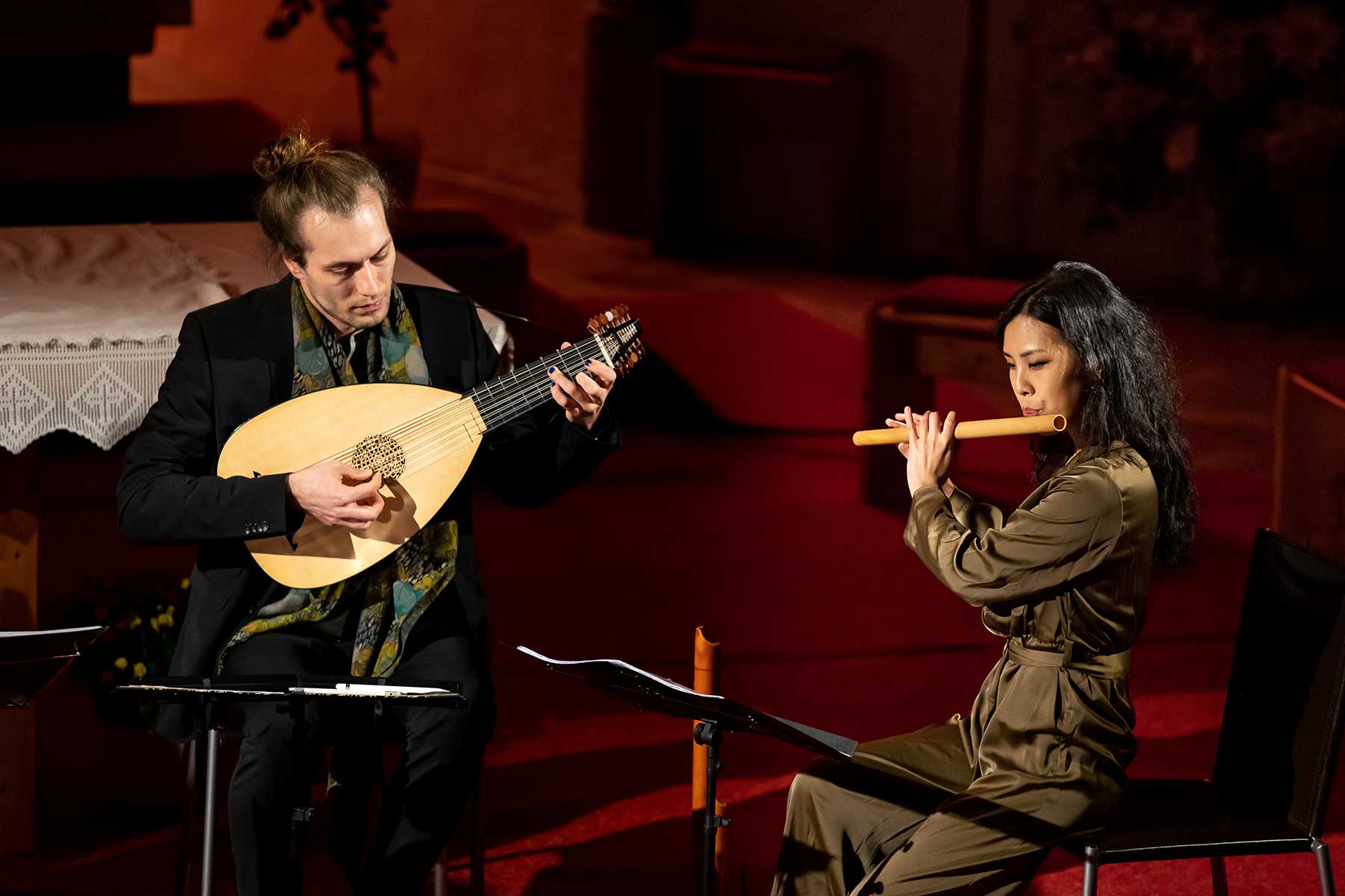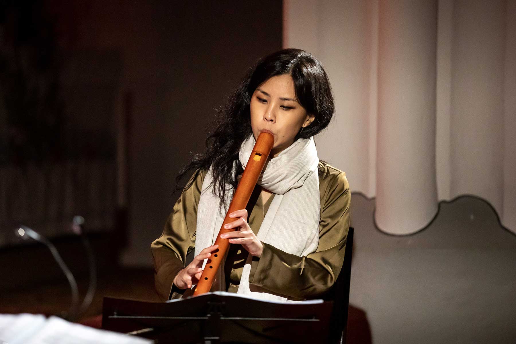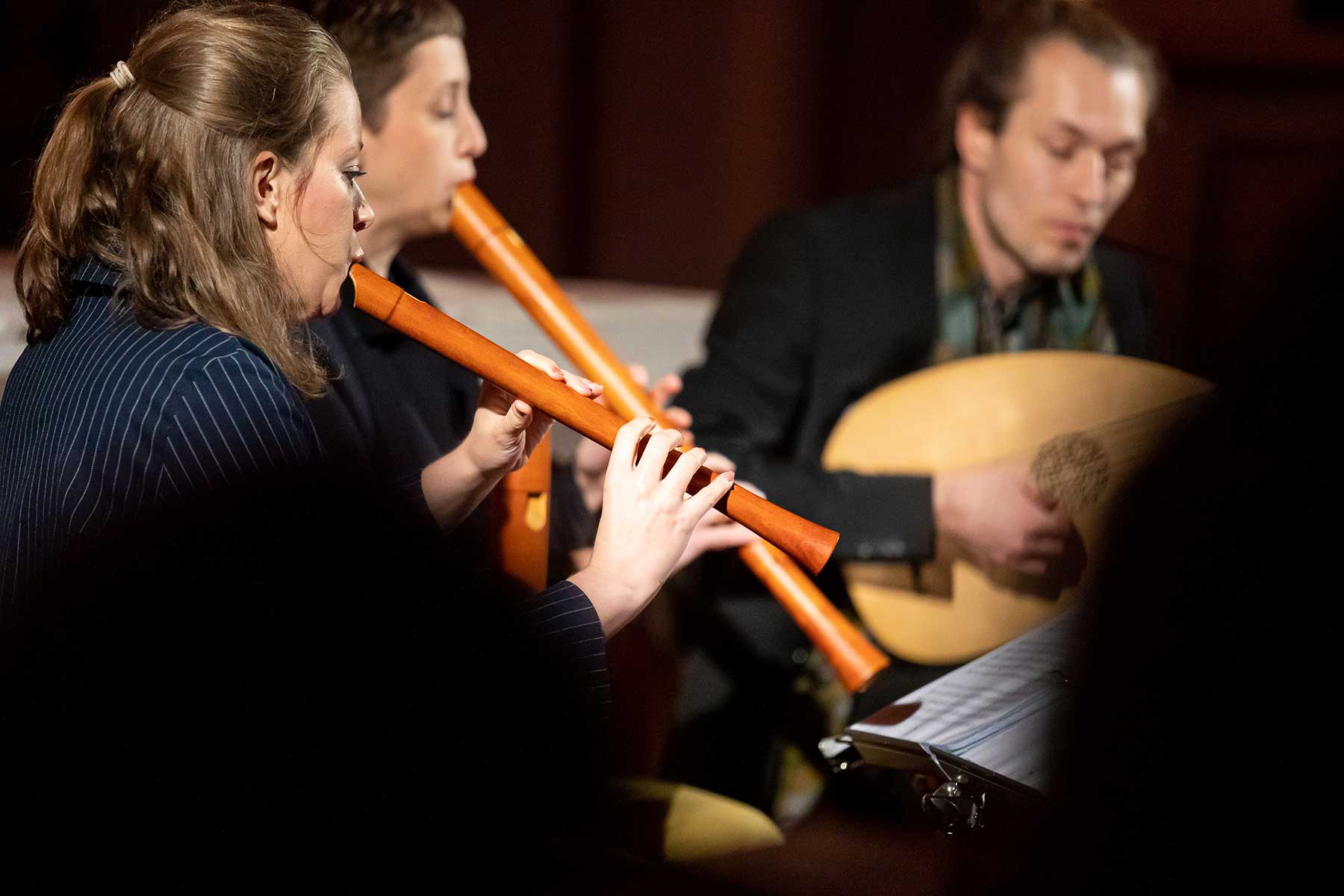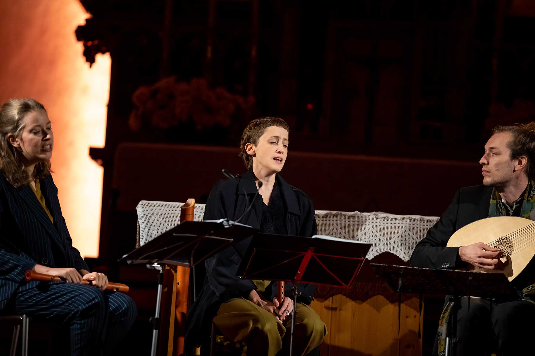 Christine Gnigler, Lorina Vallaster und Sheng-Fang Chiu (alle Blockflöte und Gesang) sowie David Bergmüller (Laute) ließen erahnen, wie „Popmusic“ vor gut 400 Jahren geklungen hat. Sie verzauberten mit ihrer Virtuosität das Publikum. Teilweise ertönte die Musik in so klarem Piano, dass man sich kaum zu atmen traute. Dennoch war in jedem Ton eine irrsinnige Kraft, die durch das Lautenspiel und den fantastischen Gesang noch einmal verstärkt wurde.