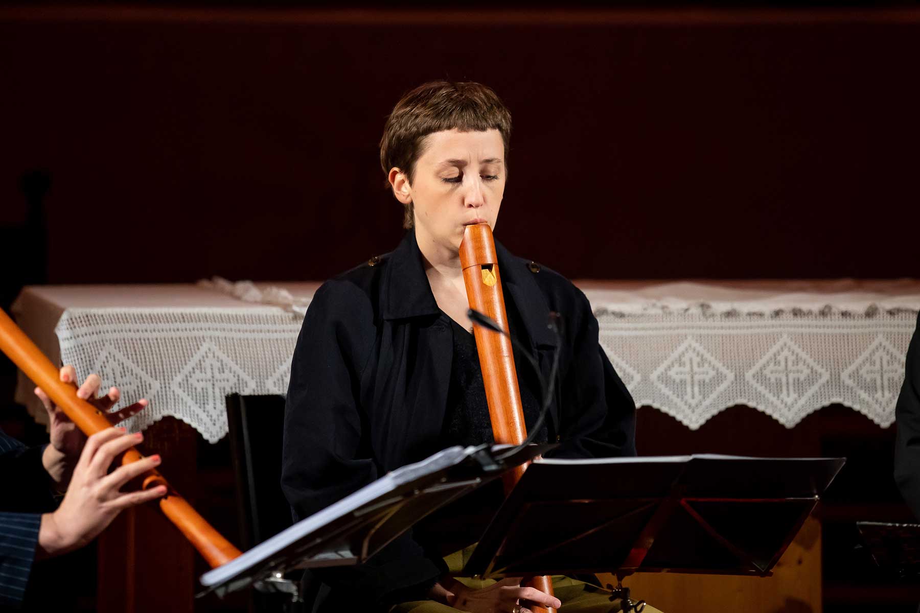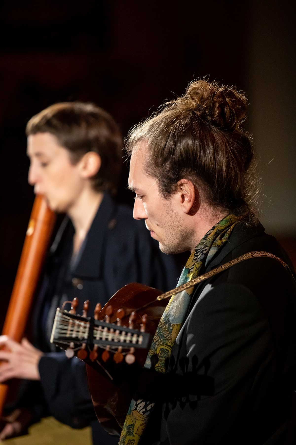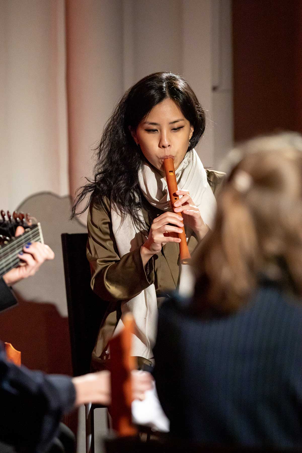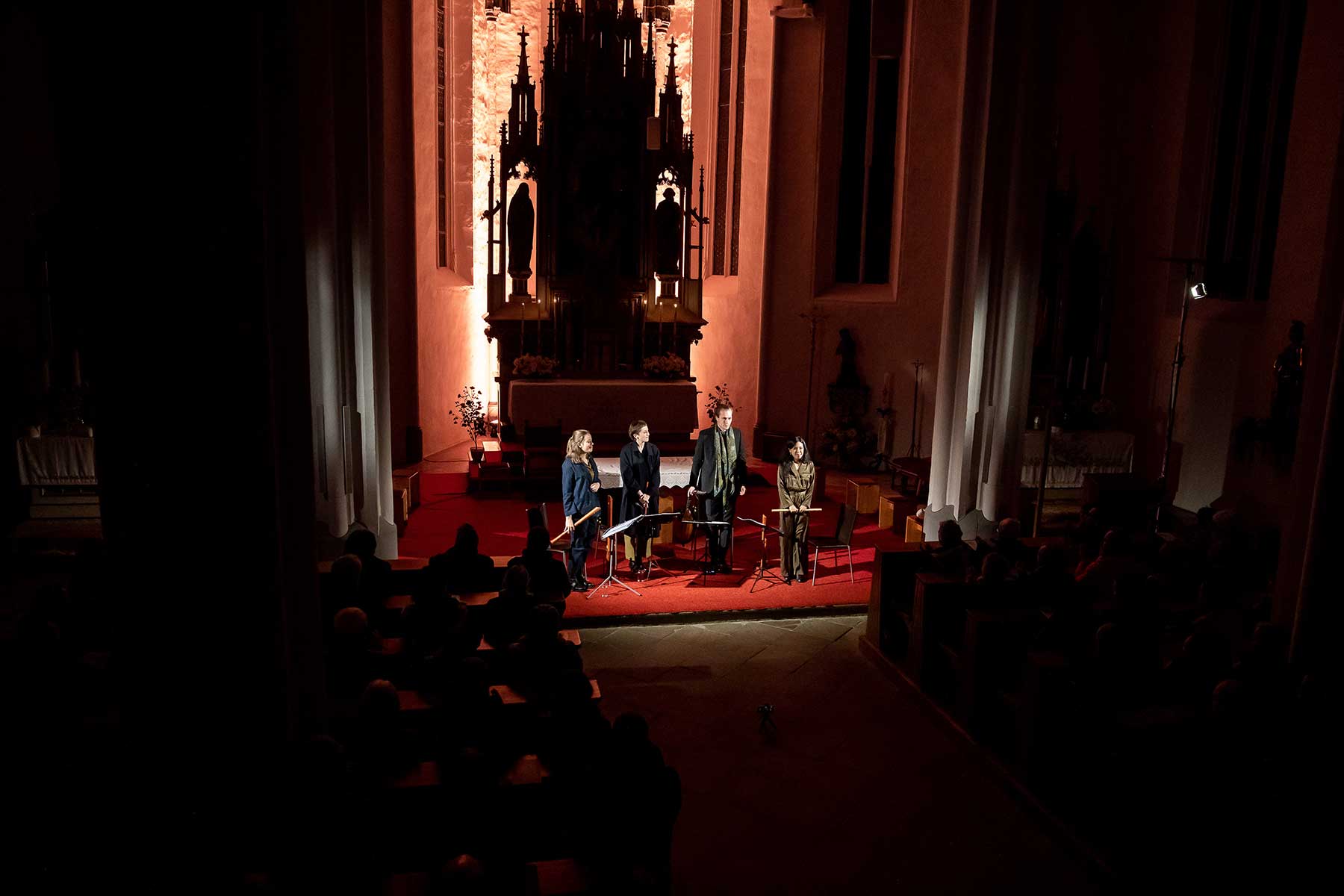 Christine Gnigler, Lorina Vallaster und Sheng-Fang Chiu (alle Blockflöte und Gesang) sowie David Bergmüller (Laute) ließen erahnen, wie „Popmusic“ vor gut 400 Jahren geklungen hat. Sie verzauberten mit ihrer Virtuosität das Publikum. Teilweise ertönte die Musik in so klarem Piano, dass man sich kaum zu atmen traute. Dennoch war in jedem Ton eine irrsinnige Kraft, die durch das Lautenspiel und den fantastischen Gesang noch einmal verstärkt wurde.