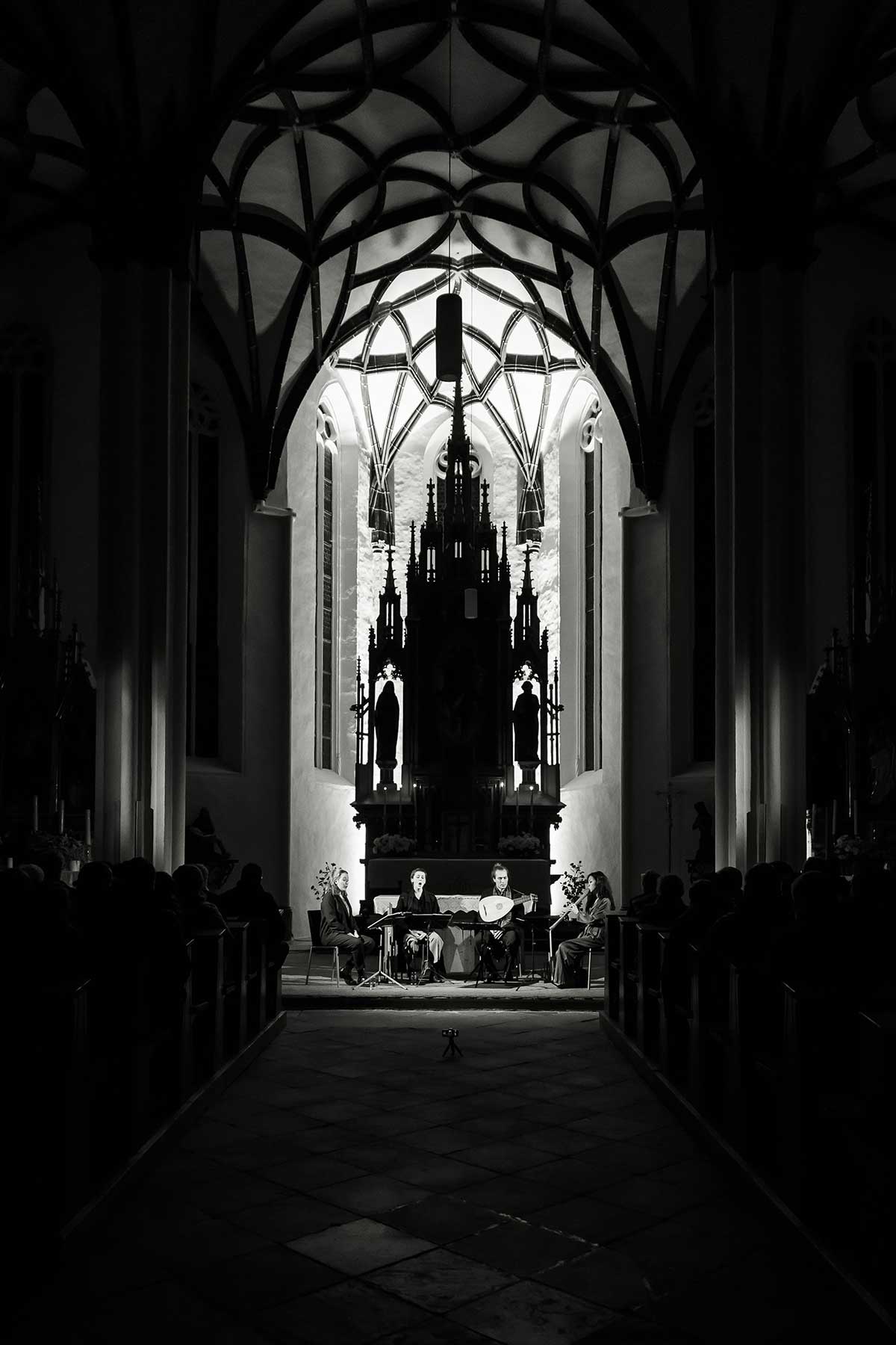 In der Pfarrkirche Krenstetten durften sich die Besucher*innen vergangenen Samstagabend auf eine Zeitreise mit Renaissancemusik begeben oder auch eine „Journey Into Night“. Denn so heißt das neueste Programm von Vivid Consort und David Bergmüller, das in der stilvoll illuminierten Kirche Premiere feierte.