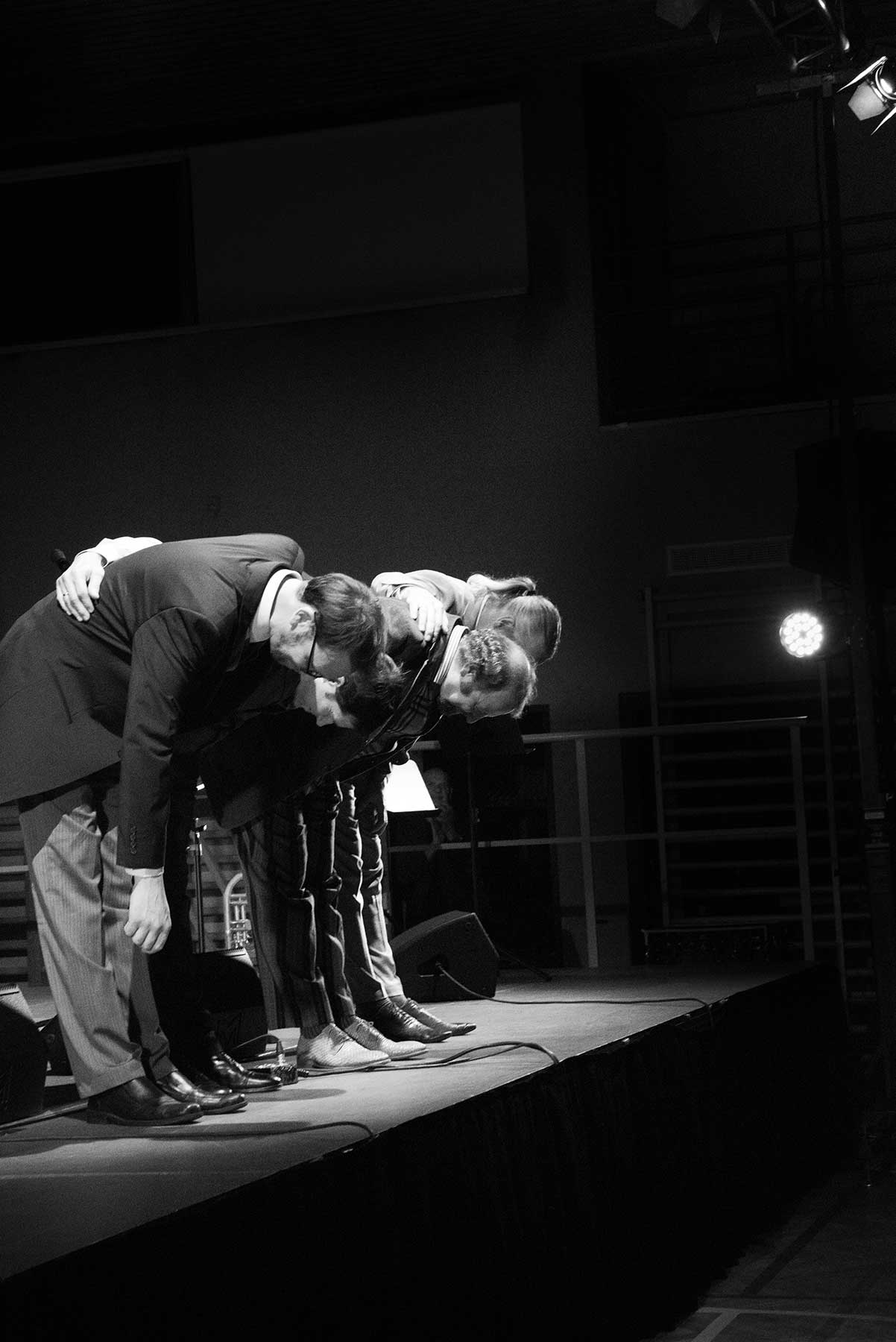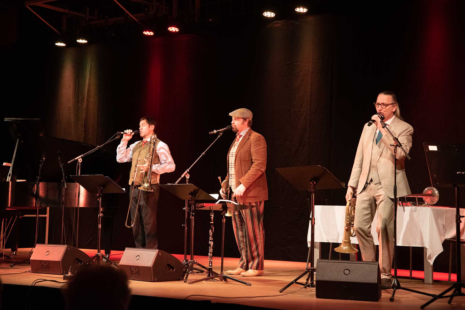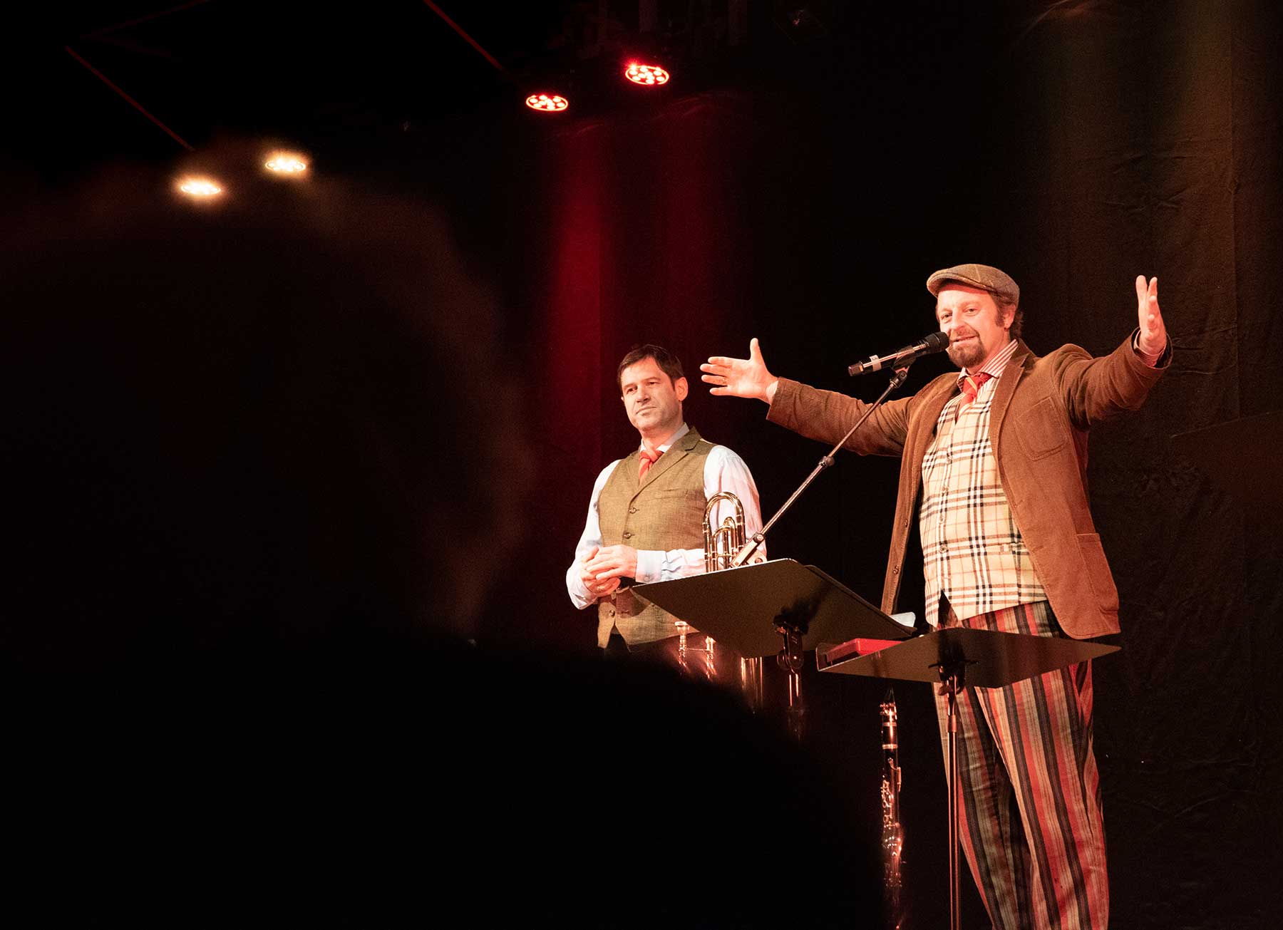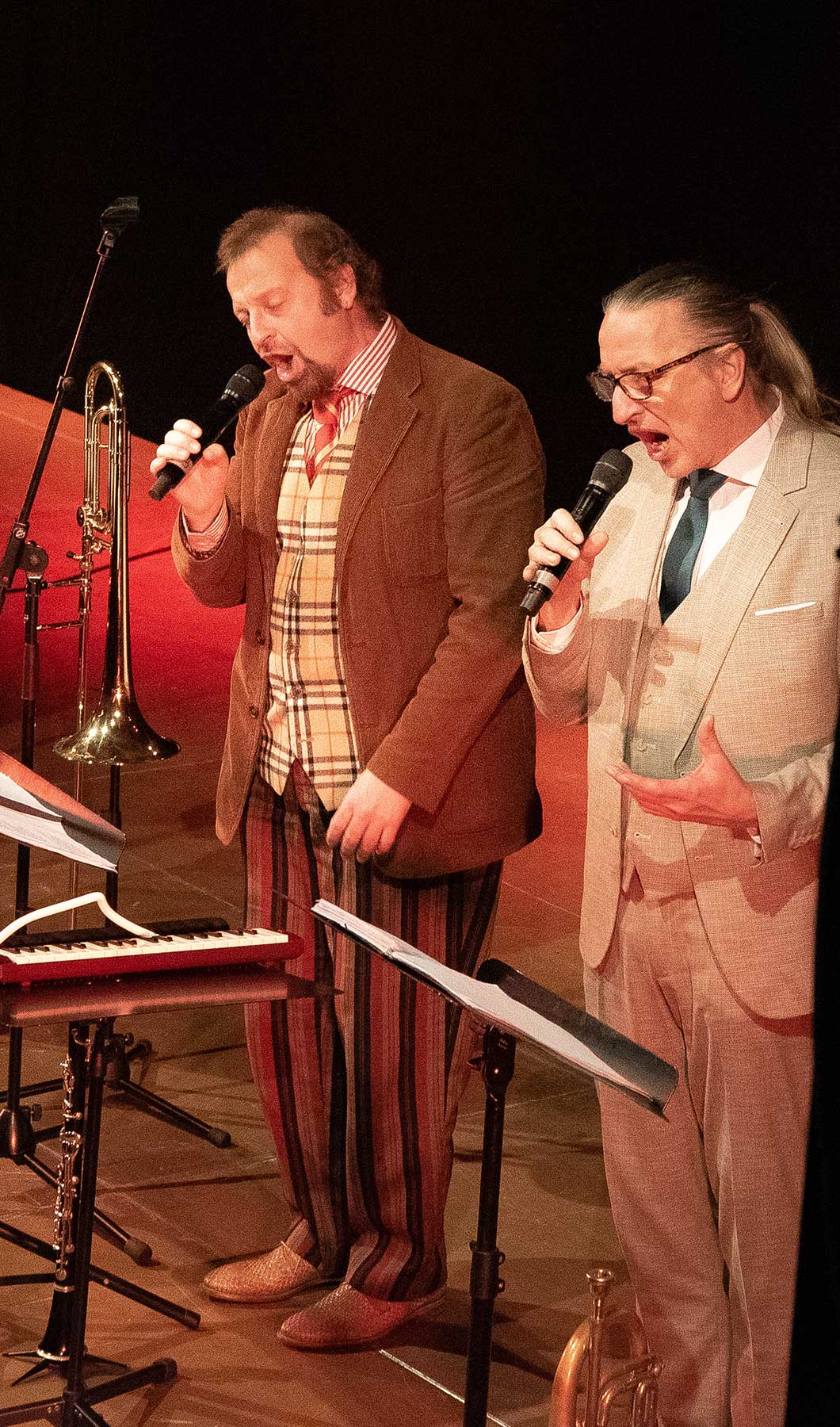Während der Zeitreise in die Welt der schönsten Schlager der 50er bis 70er Jahre blieb kein Auge trocken. Aus Rührung und vor Lachen. Weihnachten war natürlich mit dabei. Conny Froebes‘ „Die sieben Zwerge wolln heut rodeln gehen“, Pudhys „Weißer Winterwald“, Peter Alexanders „Weiße Weihnacht“ und vor allem Freddy Quinn, dem gleich ein ganzer Programmblock gewidmet wurde, mit seinem „St. Niklas war ein Seemann“ haben’s möglich gemacht. Mitgesungen wurde viel und mit Hingabe. Schräge Töne, freie Text-Interpretationen, überraschende Liedauslegungen und über allem dieser hochprofessionelle, wunderschöne Klangteppich, der uns permanent staunen ließ. Brillant und souverän interpretiert, zogen angesichts der bekannteren und unbekannteren Songs Bilder voller Liebe, Sehnsucht und Fernweh vor unseren vorweihnachtlich geprägten Augen auf.