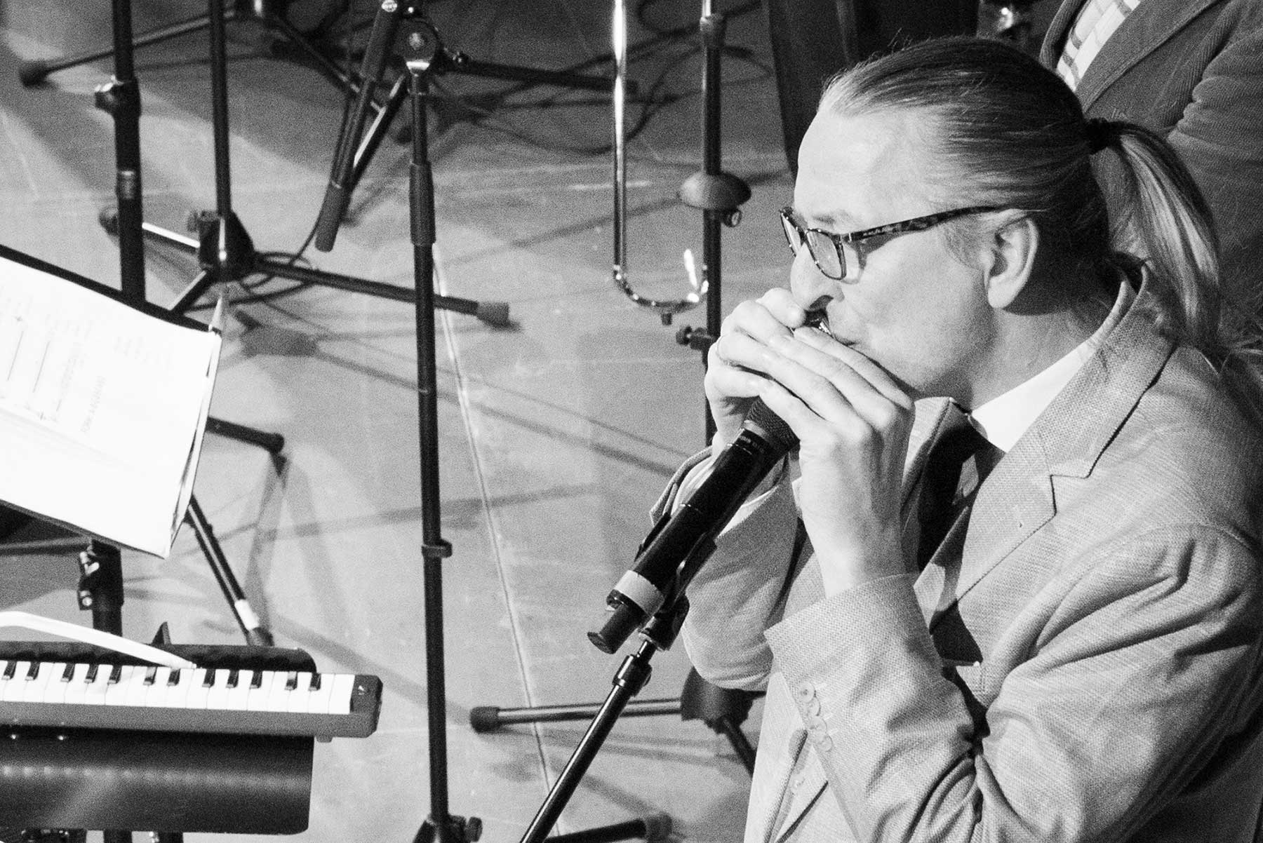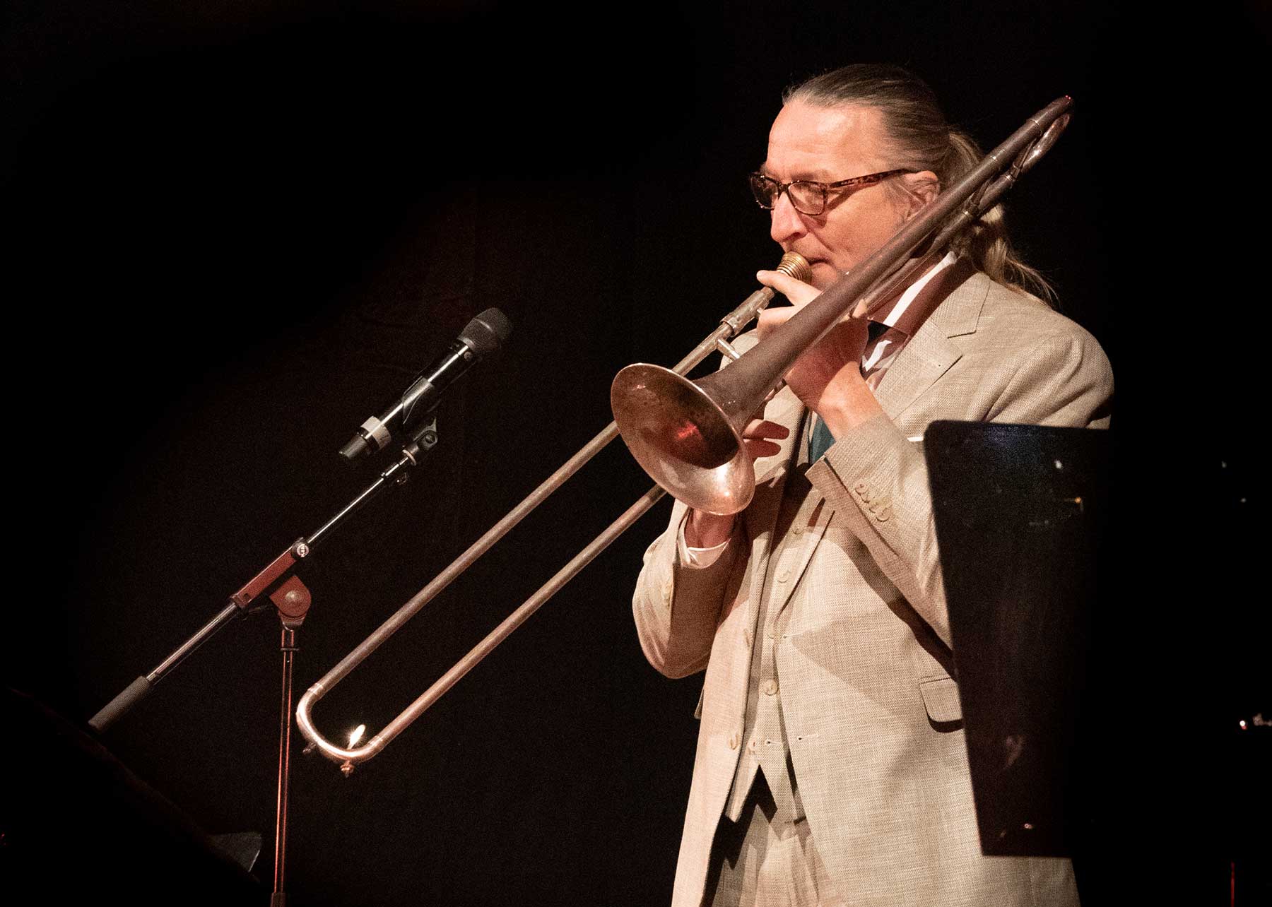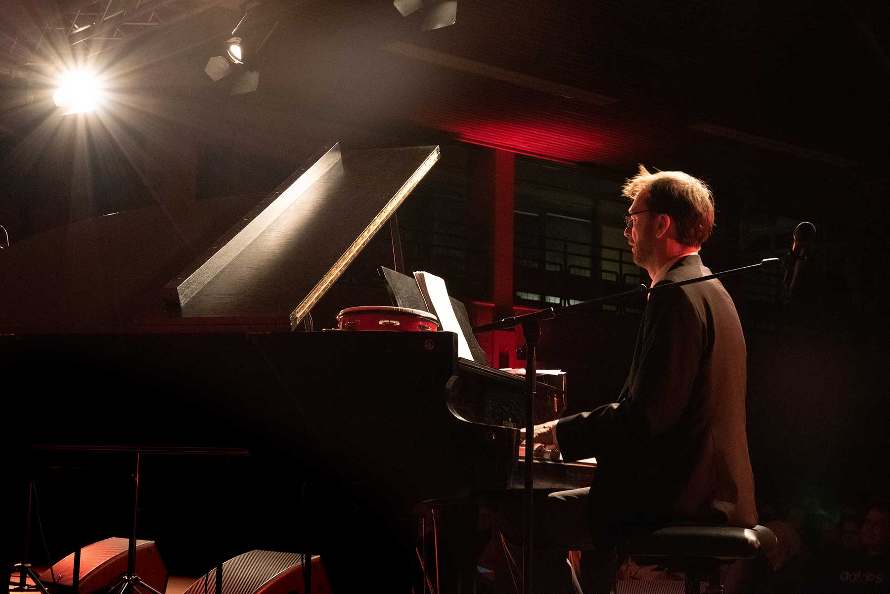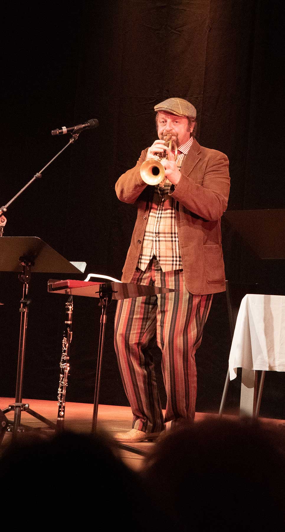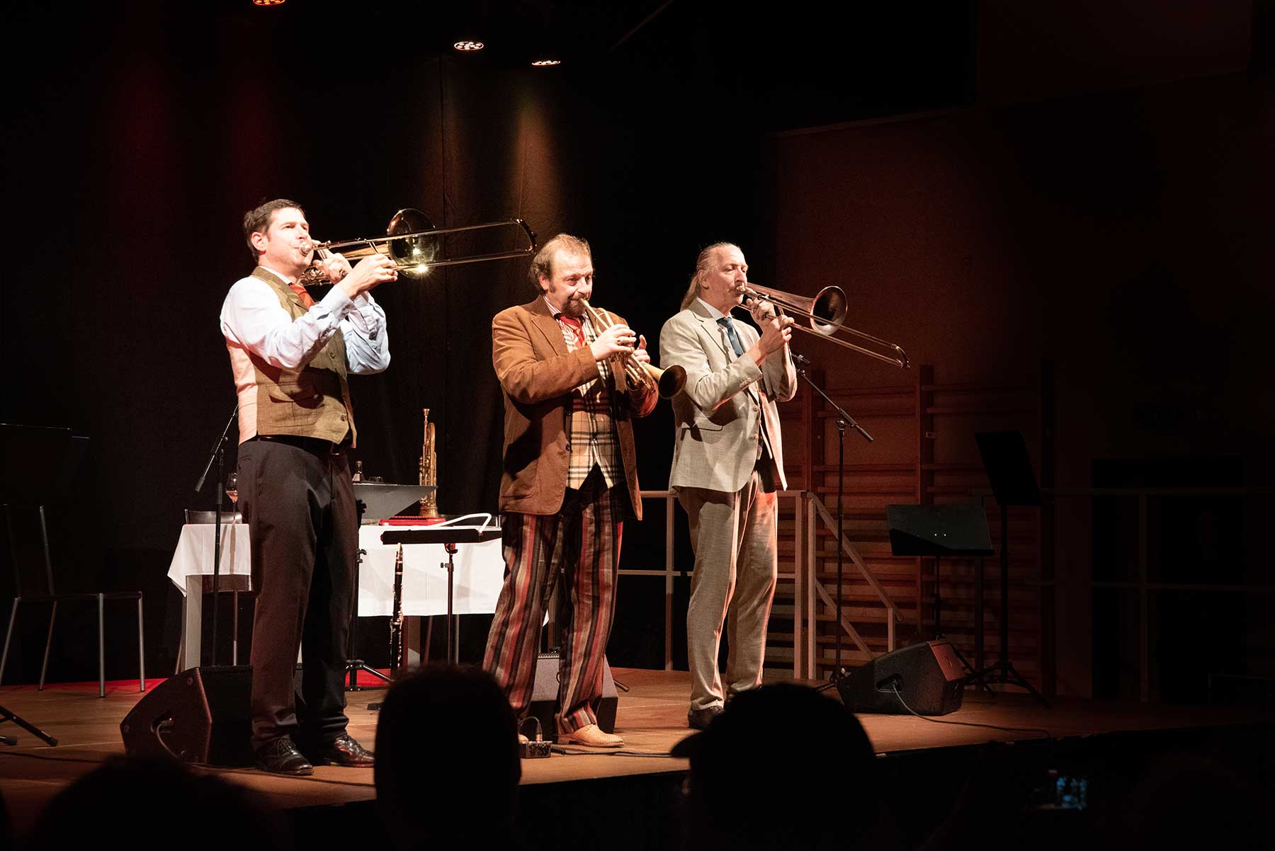 Wir denken, wir haben nicht zu viel versprochen. Fast im Gegenteil. Wer an diesem Abend dabei war – Danke an alle, die die Sporthalle gefüllt haben – weiß, dass wir in den Ankündigungen womöglich sogar untertrieben haben. Der „Safe Space“ Sporthalle einigte sich bereits zu Beginn auf die Spielregeln: Hier drinnen wurde die böse Welt draußen gelassen, man war unter Therapiegenoss*innen. Der Spitzentrompeter ließ uns wissen, dass auch er selbst dieses unterhaltsame Gemeinschaftserlebnis brauche. Um etwas Befreiendes und positive Energien heraufzubeschwören. Und das hat ganz sensationell geklappt, muss man sagen.