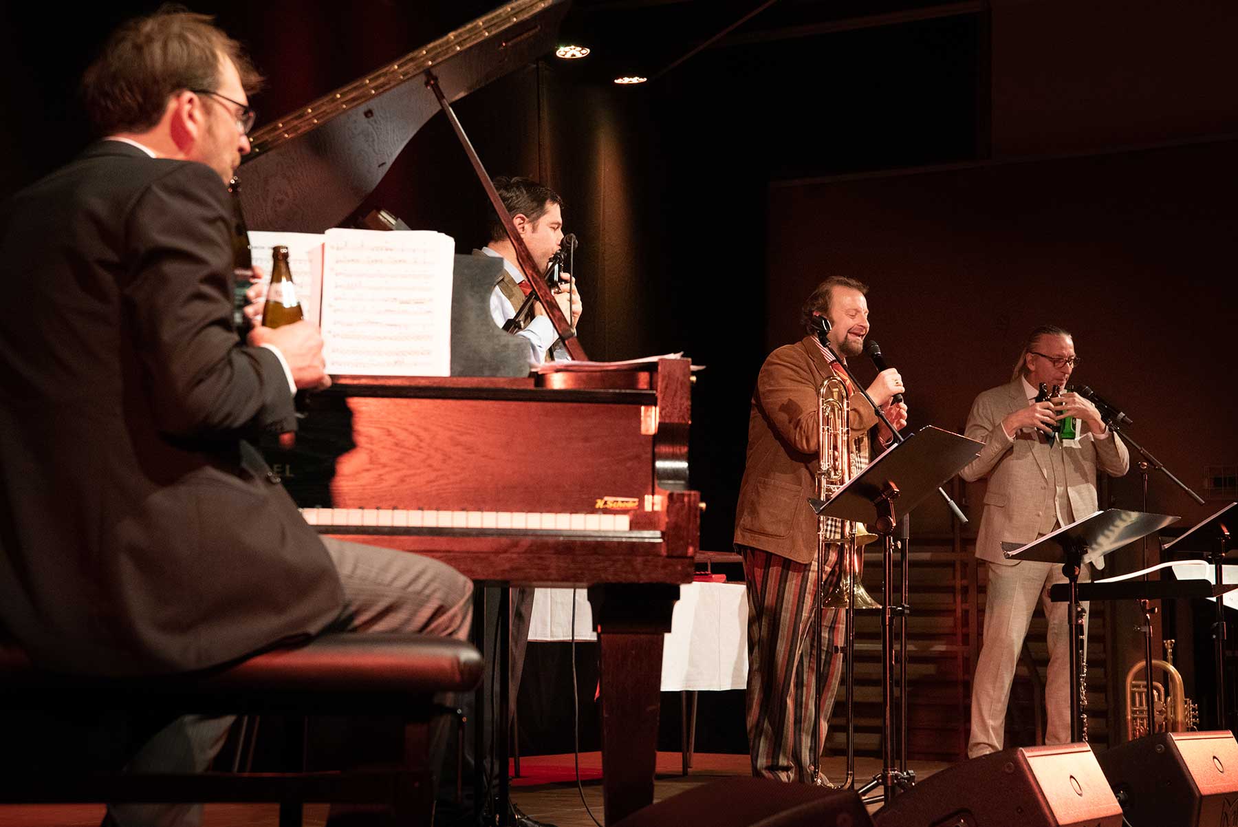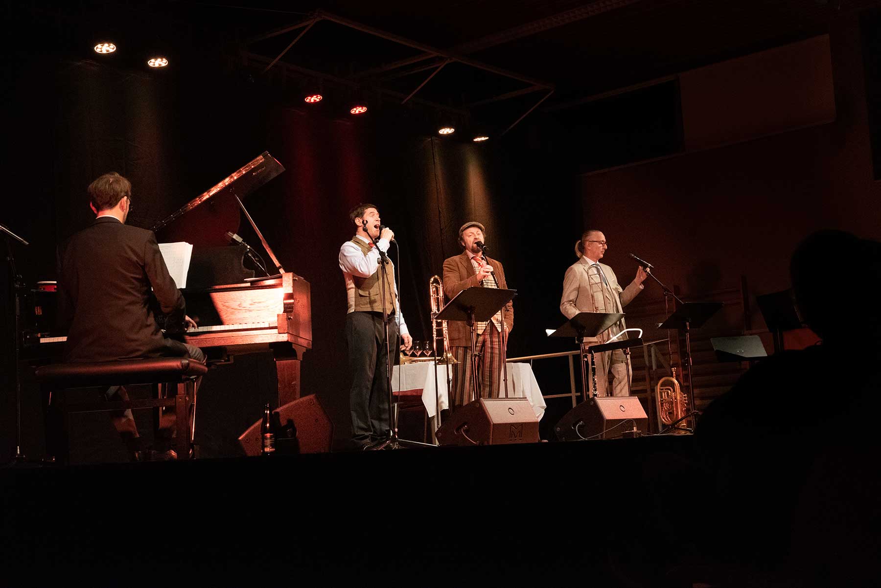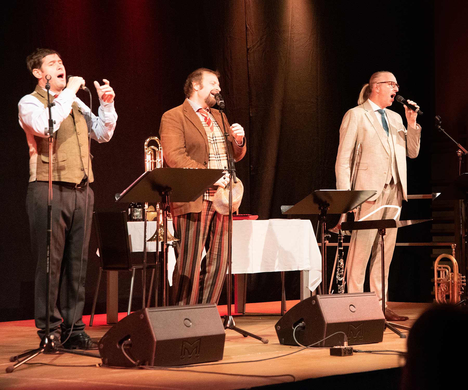 Die X-Mas Schlagertherapie mit Thomas Gansch, Leonhard Paul, Sebastian Fuchsberger und Michael Hornek.