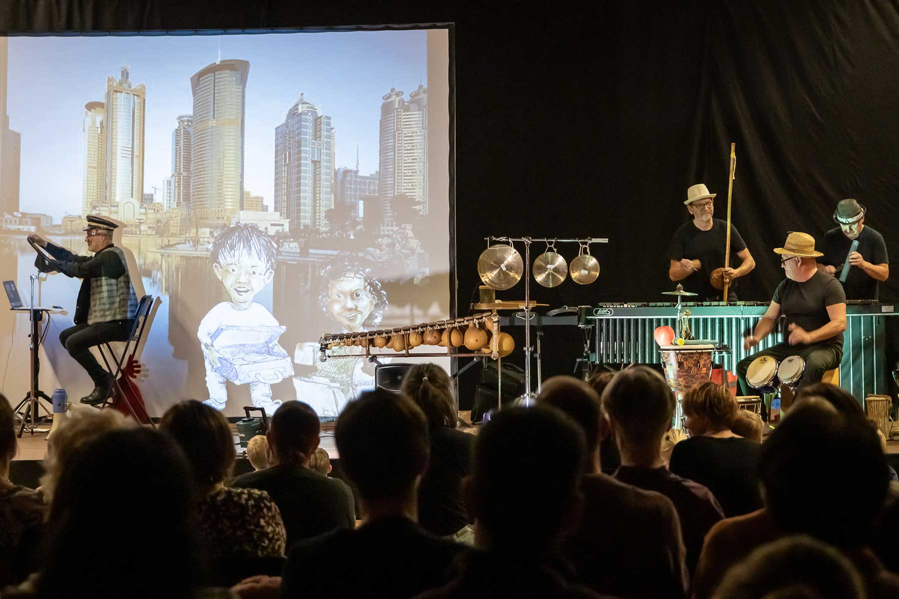 Ein großer Abend für kleine Leute! Zeichner Rupert Hörbst und das Percussion-Ensemble „Talking Mallets“ füllten die Sporthalle bis in den kleinsten Winkel mit Neugierde, Lachen und Musik. Was für ein wundervoller, lebendiger Sonntag, an dem die Welt zu Gast in Aschbach war!